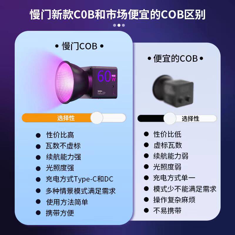 📚 MAMEN慢门60W补光灯直播摄影RGB全彩双色温手持拍照LED氛围影视灯