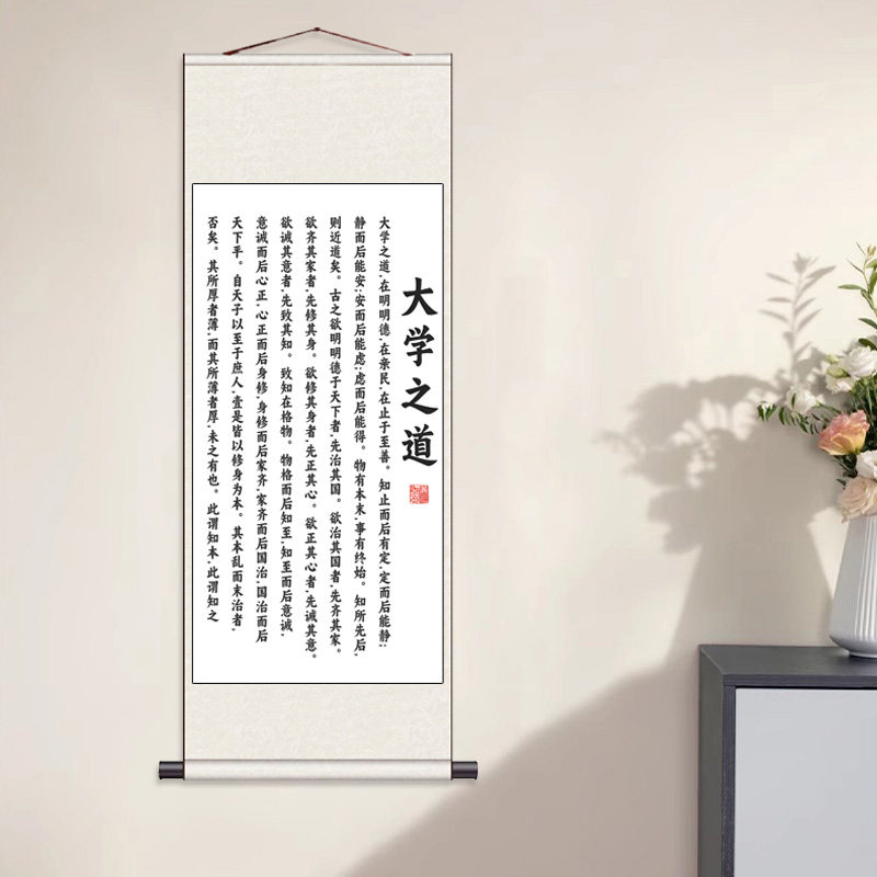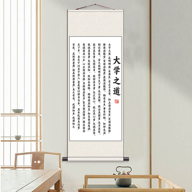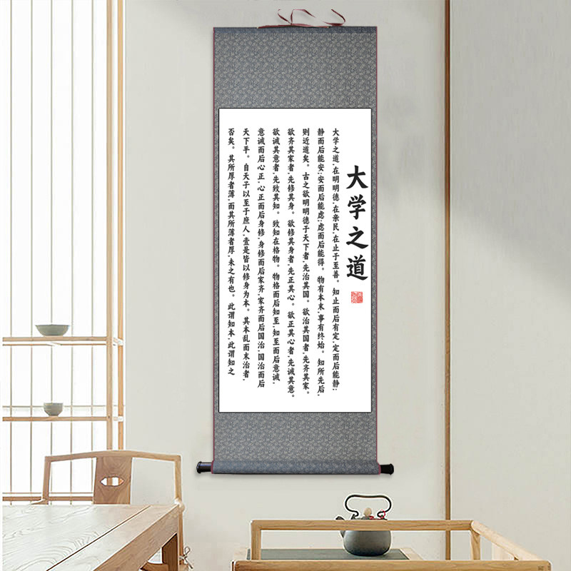📚 大学之道书法挂画朱熹办公室书房教室培训班儒学经典丝绸字画卷轴