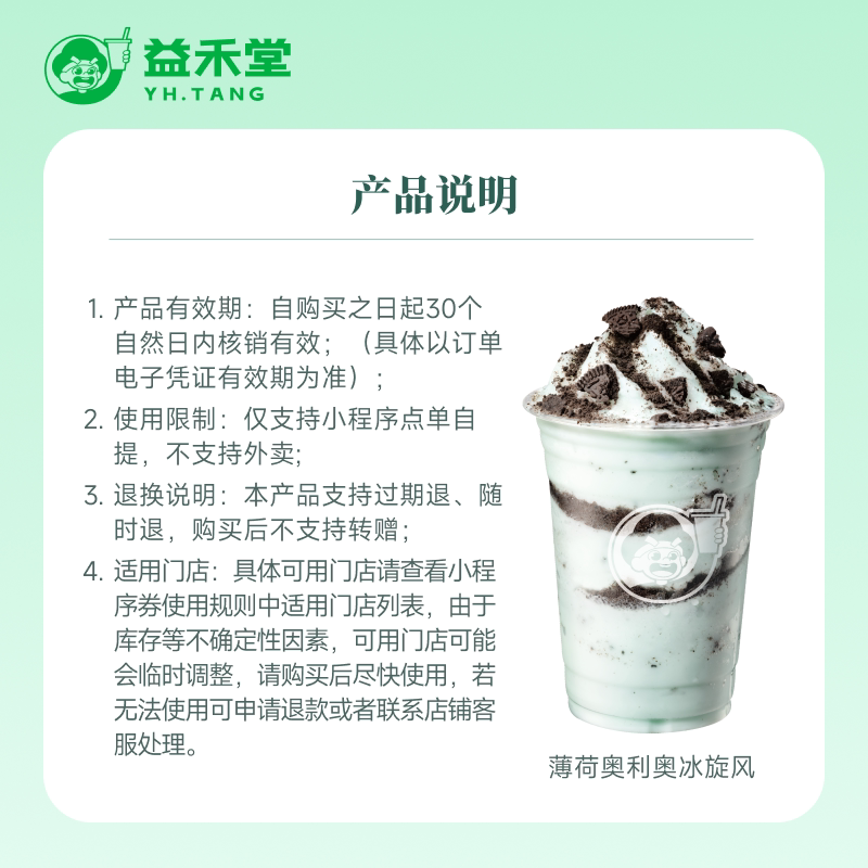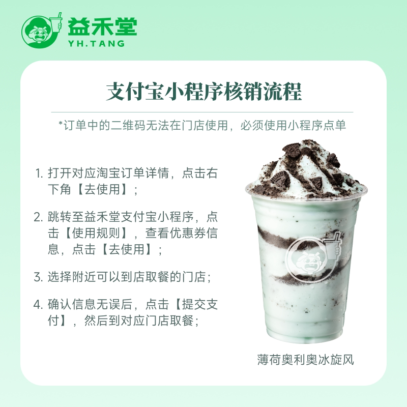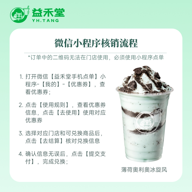 📚 益禾堂奶茶 薄荷奥利奥冰旋风 电子兑换券 小程序点单到店自取