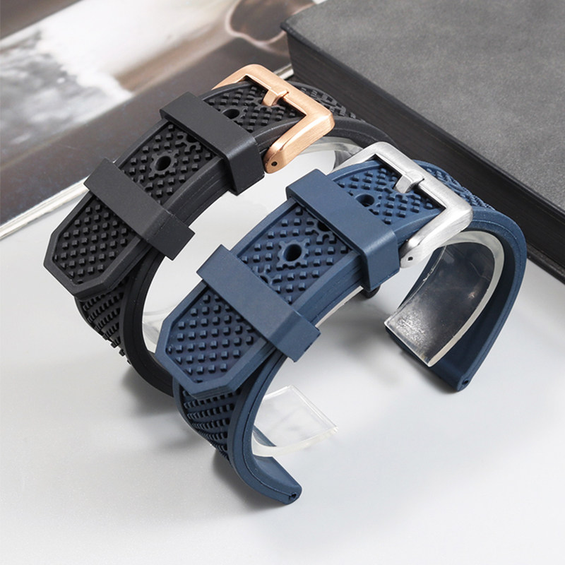 📚 适配西铁城氟橡胶手表带蓝天使一代AT8020蓝色防水表链男士款23mm