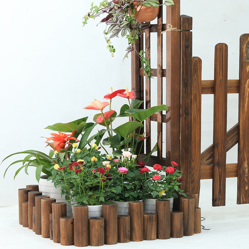 📚 阳台花园造景道具商场木栅栏花坛围栏幼儿园室内装饰木桩摆件落地