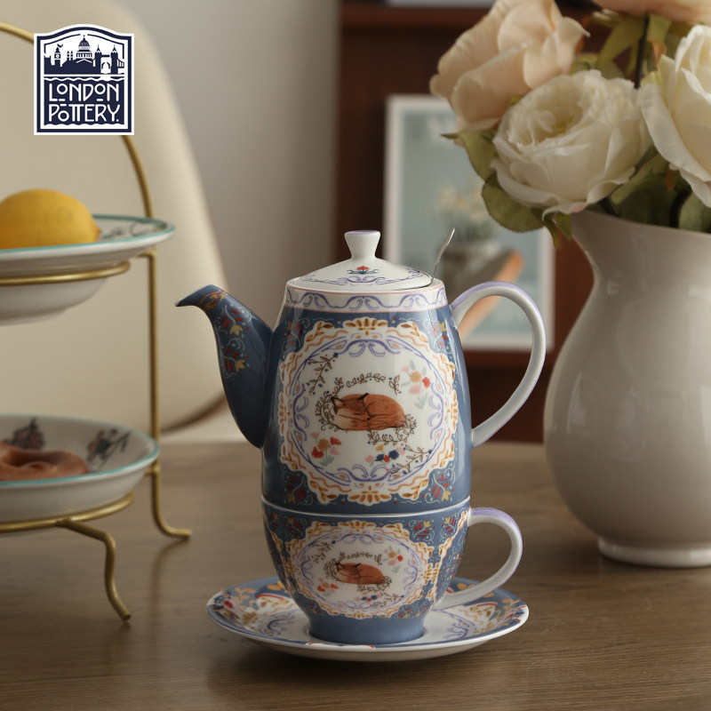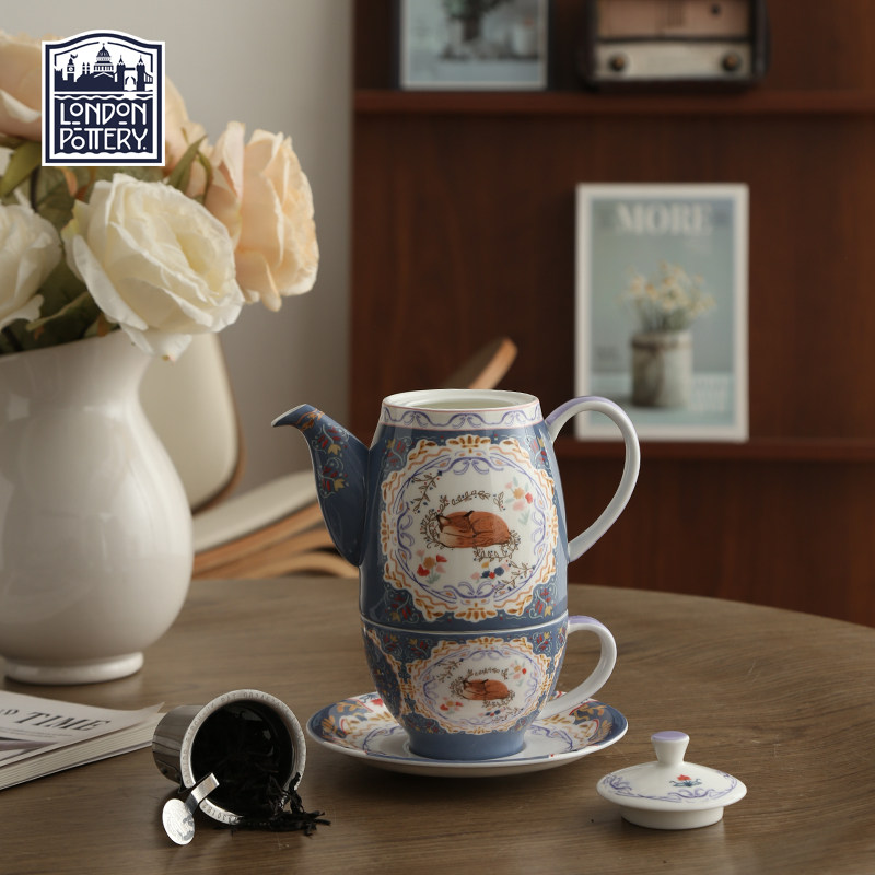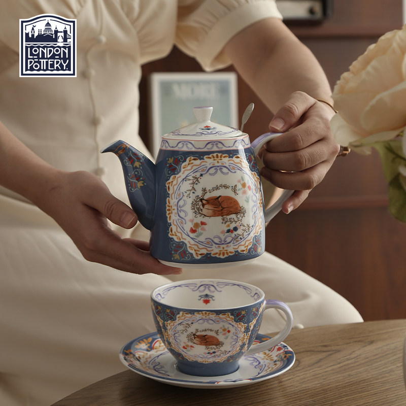 📚 狐狸铃铛壶骨瓷一壶一杯滤网单人泡茶壶杯碟精致下午茶花茶壶茶具