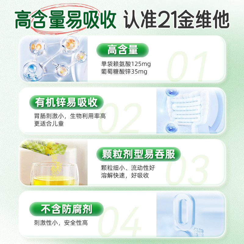 📚 21金维他赖氨葡锌颗粒葡萄糖酸锌婴幼儿锌补充剂儿童赖安普锌补锌