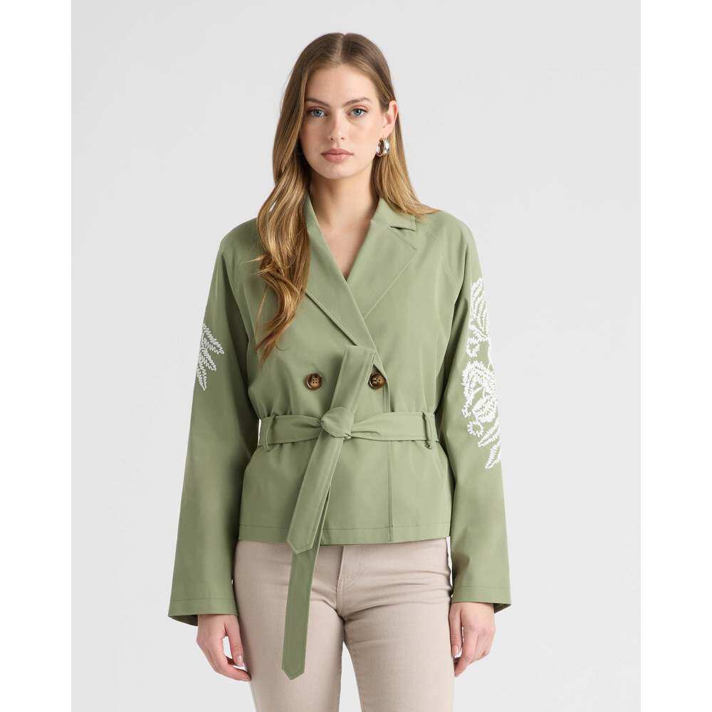📚 自营NVLT Women’s Cropped Trench Coat with Embroideries - kh