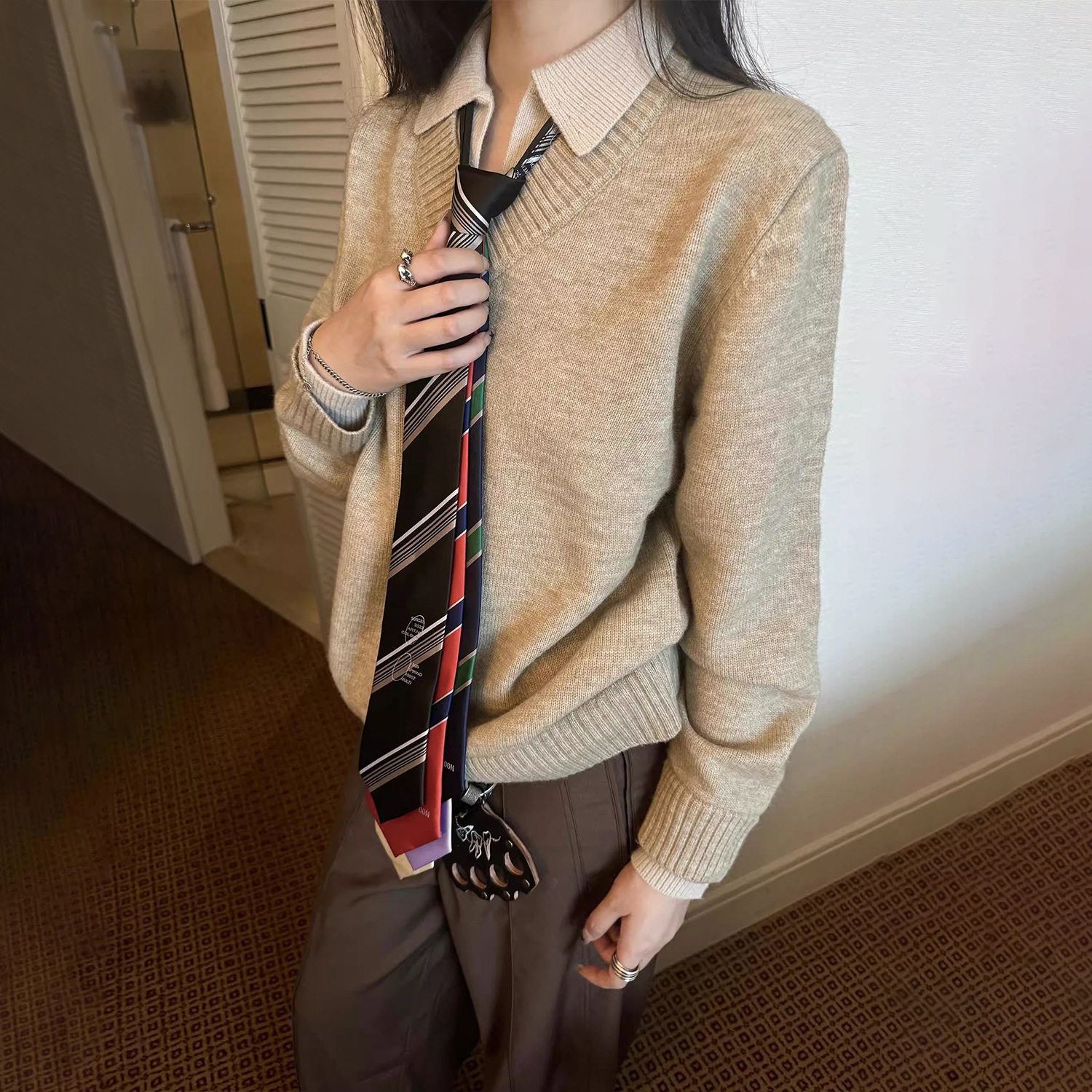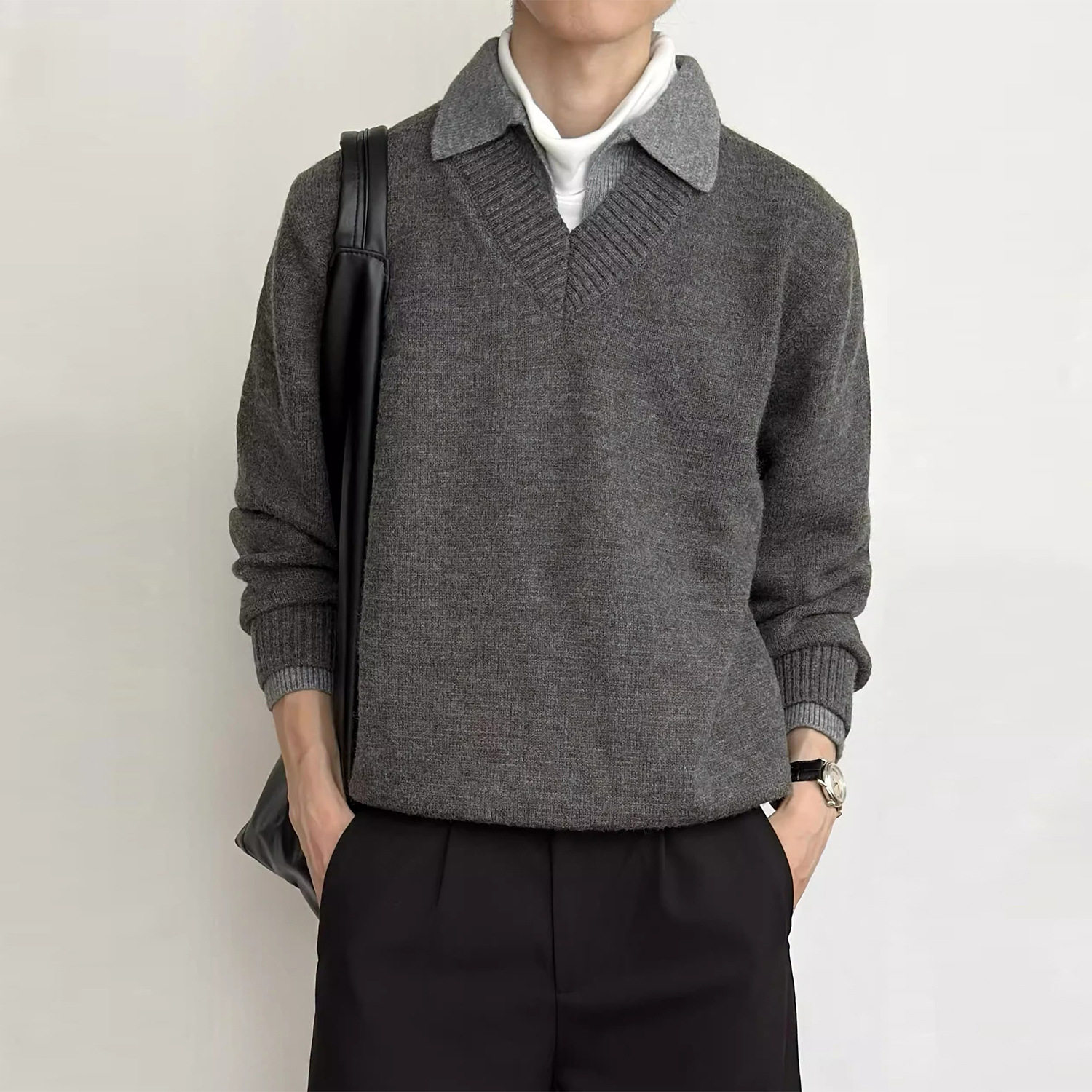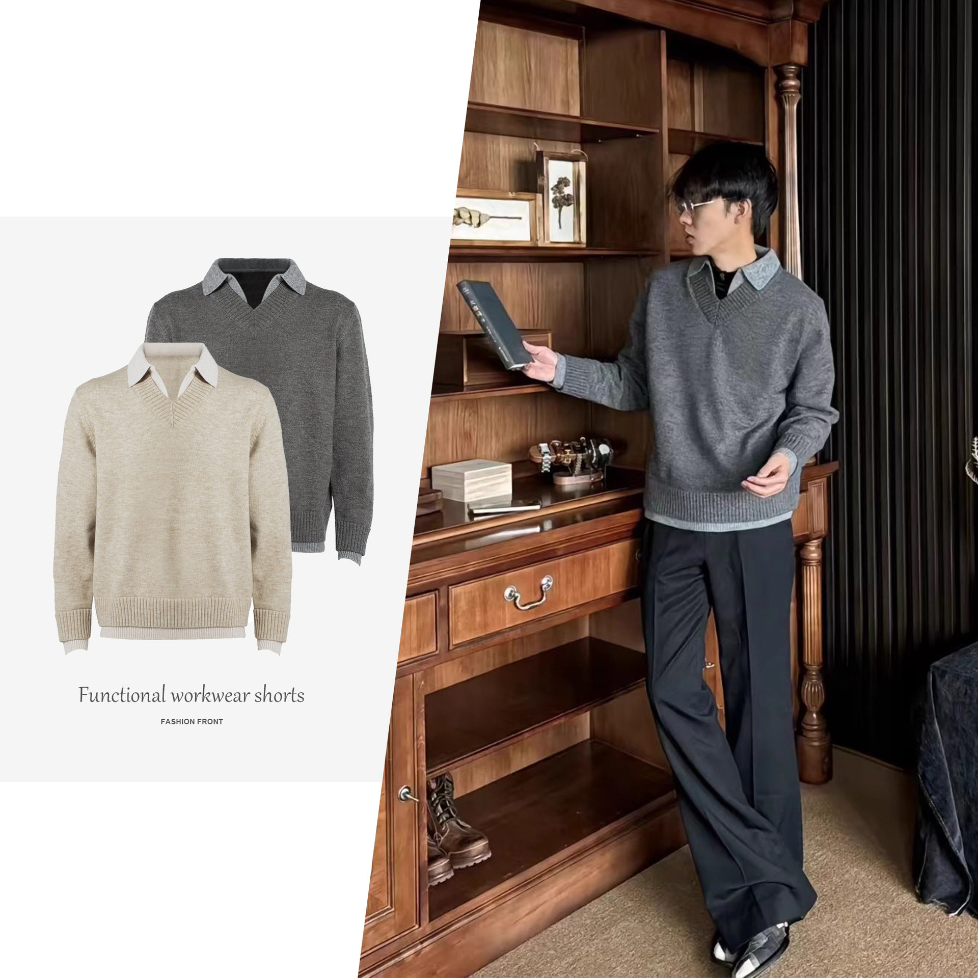 📚 【CSMY】Stay the Night 假两件V领仿羊绒polo氛围感老钱毛衣