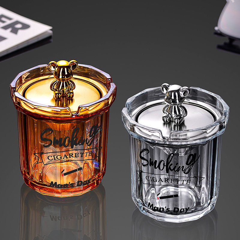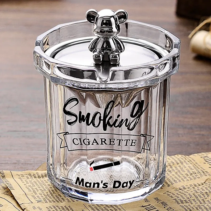 📚 带盖子漏斗烟灰缸防飞灰家用客厅创意个性大气办公室烟缸加厚玻璃