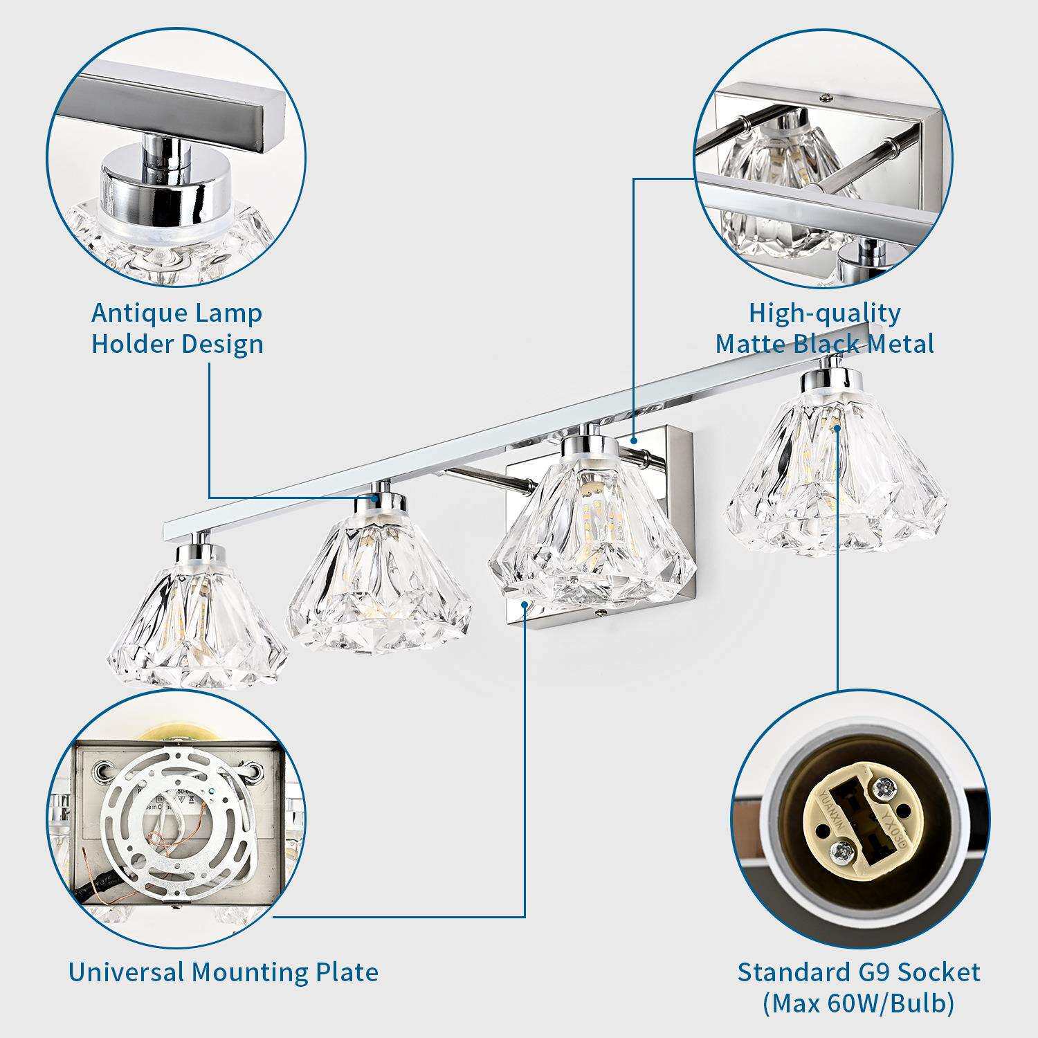 📚 跨境现代简约水晶镜前灯卧室床头化妆浴室洗手间2头3头美式壁灯
