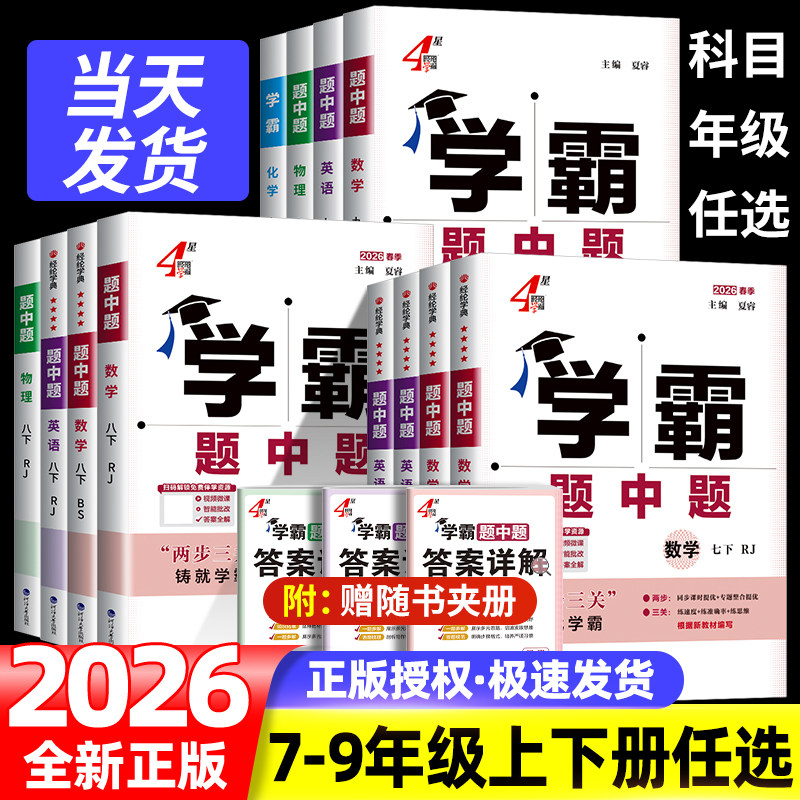 📚 2026版五星学霸题中题七年级八年级九年级上册下册数学英语科学化学人教版苏教版沪科同步辅导资料练习册课时作业专题训练学霸练