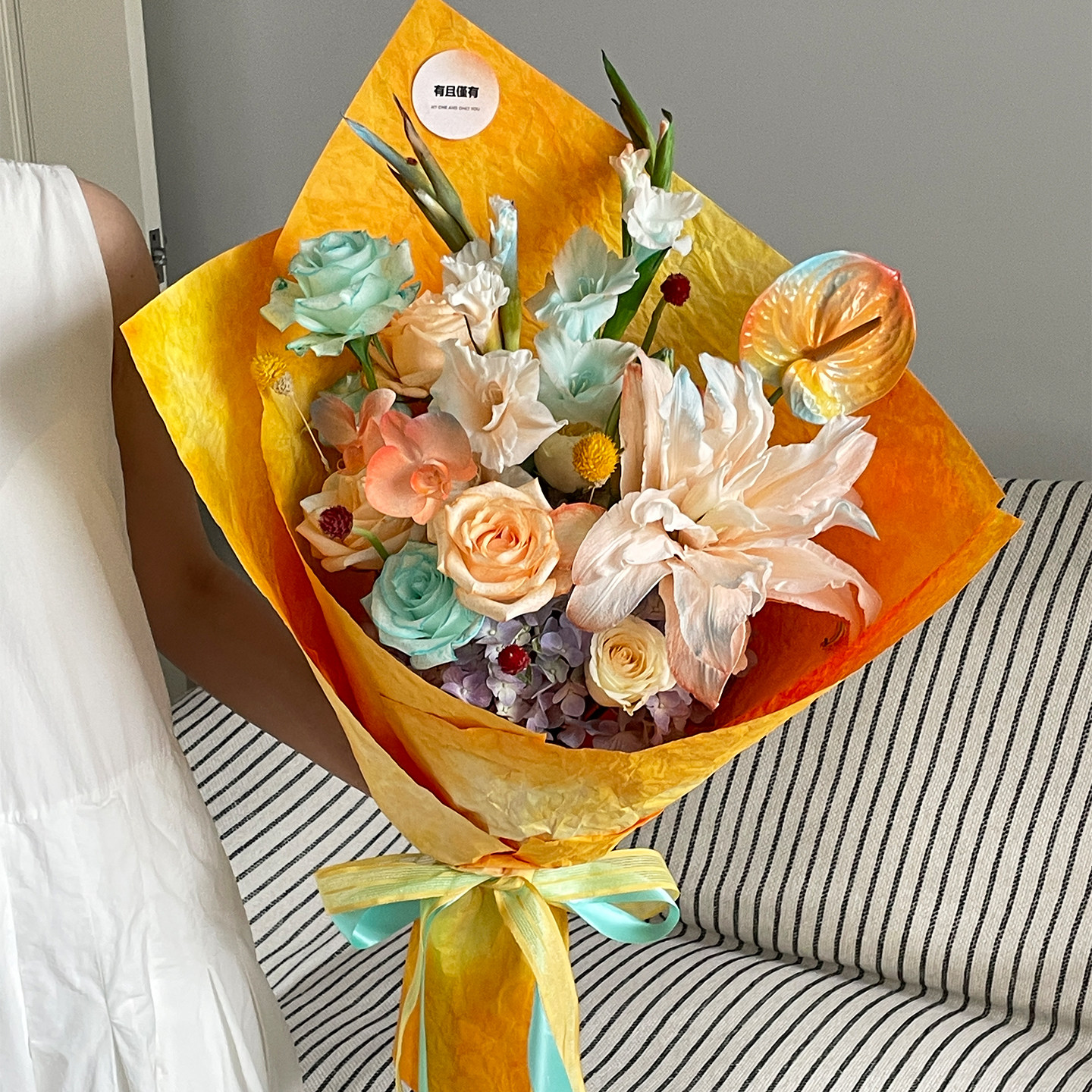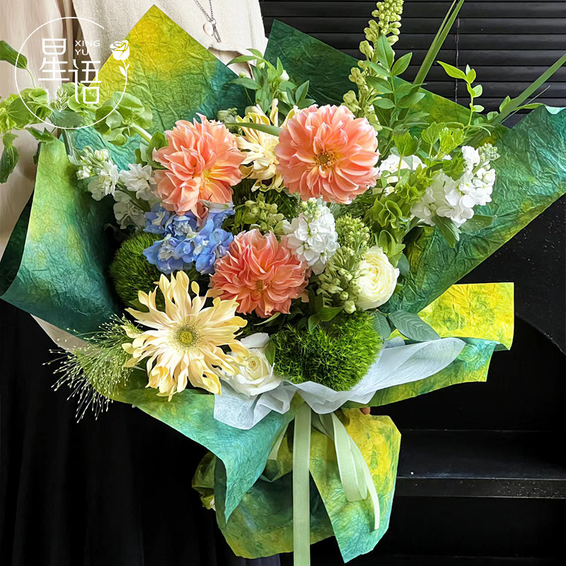 📚 黄恋绿鲜花包装纸手工石纹纸褶皱肌理艺术纸花束包花纸花艺包装