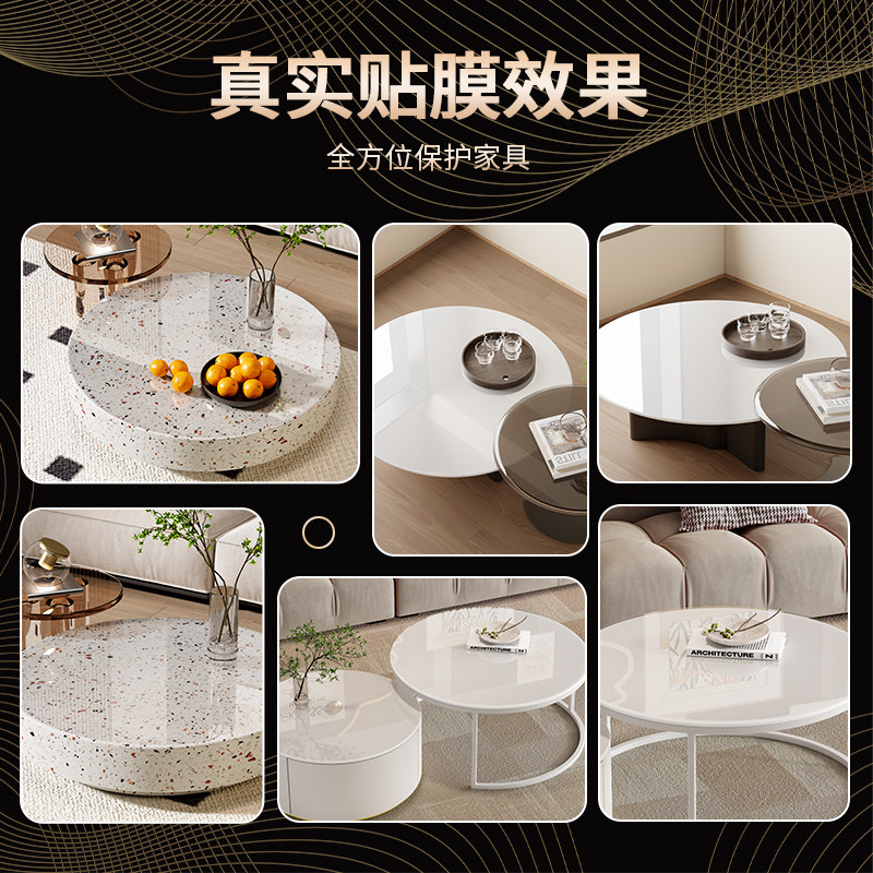📚 圆形茶几贴膜薄自粘保护木制家具餐桌桌面水晶台面可裁剪隐形膜