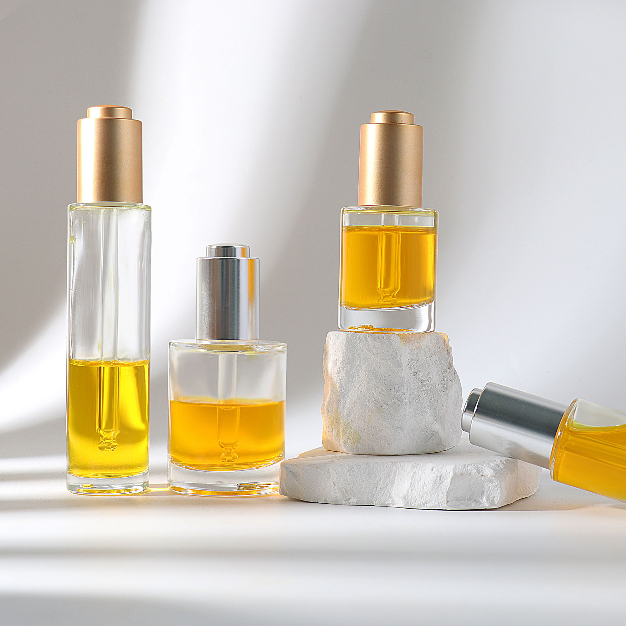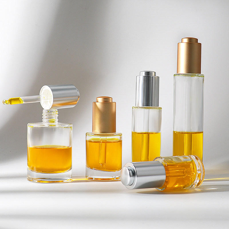 📚 HOPECK电镀金银按压滴管盖透模制玻璃瓶18牙15-50ml粉底液精油瓶