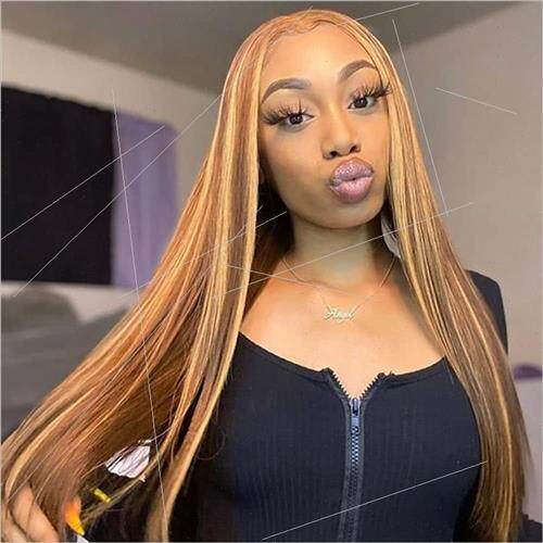 📚 Europe fashion wig women center parted long gradient brown b