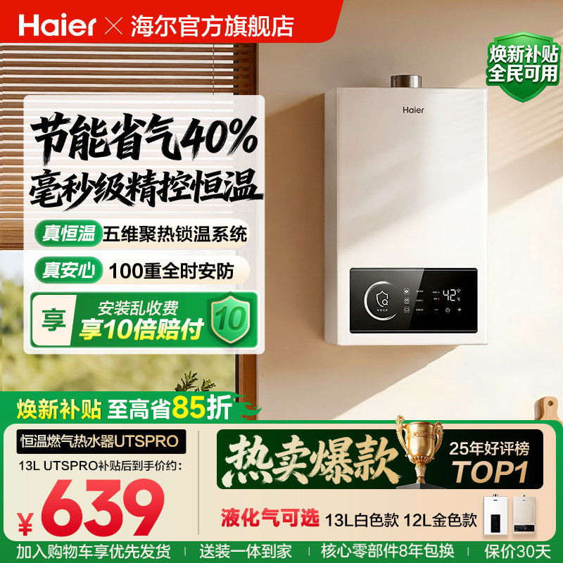 📚 [换新补贴]海尔燃气热水器天然气煤气款液化气家用洗澡恒温UTSPRO