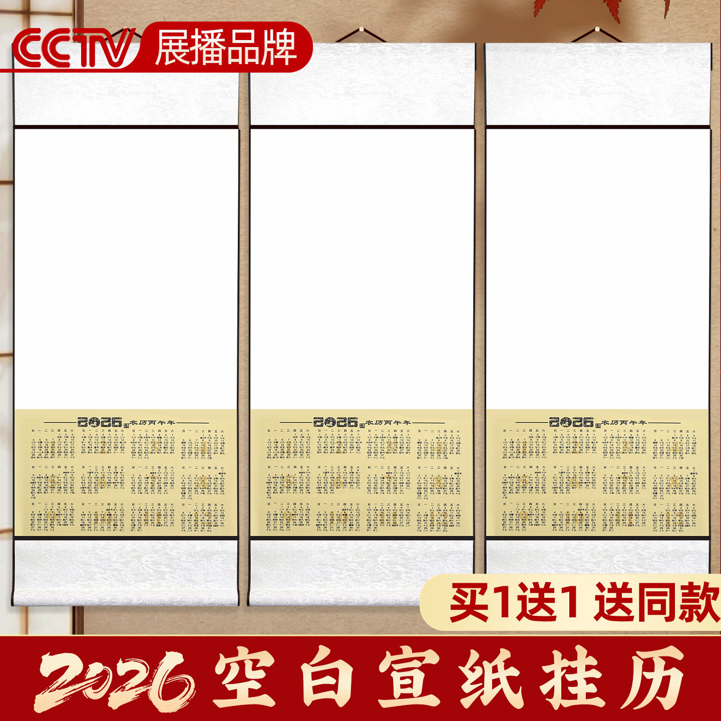 📚 2026年空白宣纸挂历马年新款卷轴书法作品纸生宣纸国画专用春节年历画轴新年毛笔字画可定制日历挂轴画卷