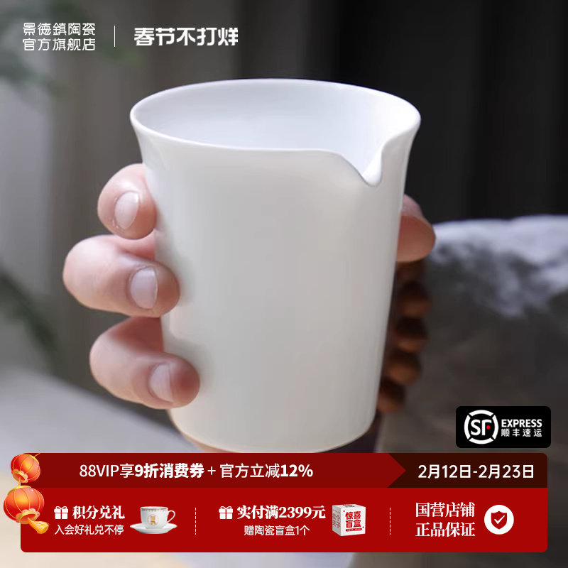 📚 景德镇官方鹰嘴茶具分茶器公道杯陶瓷配件白瓷公杯专用单个公平杯
