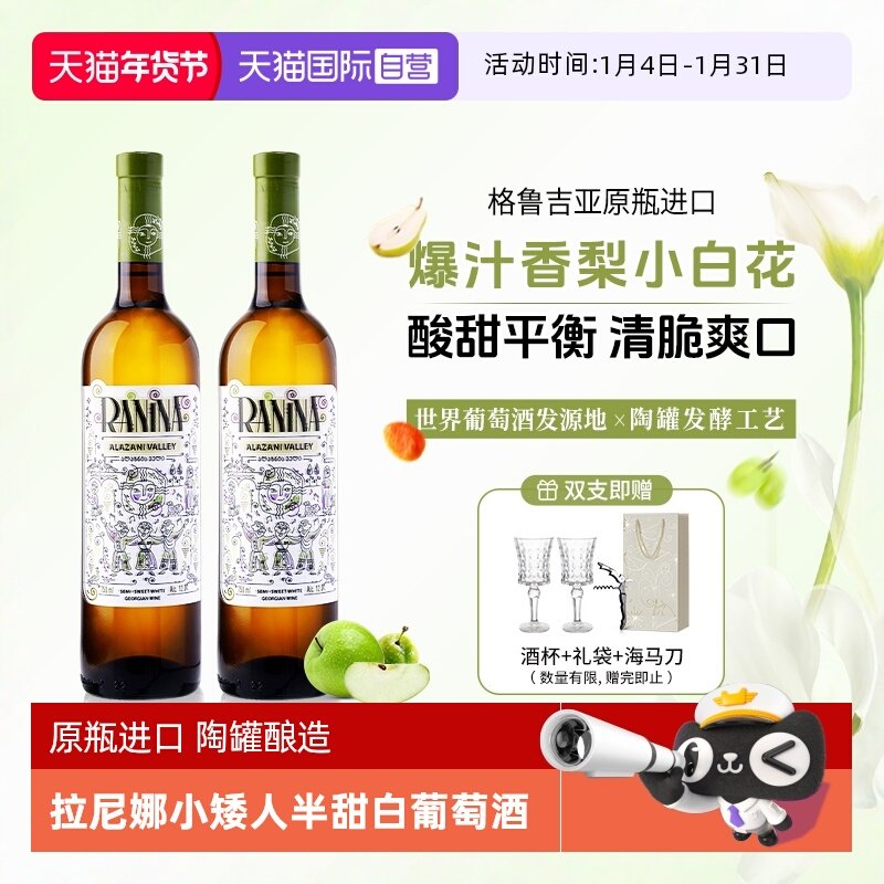 📚 【自营】格鲁吉亚原瓶进口拉尼娜小矮人半甜白葡萄酒甜型微醺正品