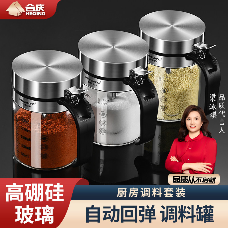 📚 调料盒厨房密封盐罐玻璃调料罐家用调味瓶组合套装分装瓶味精罐子