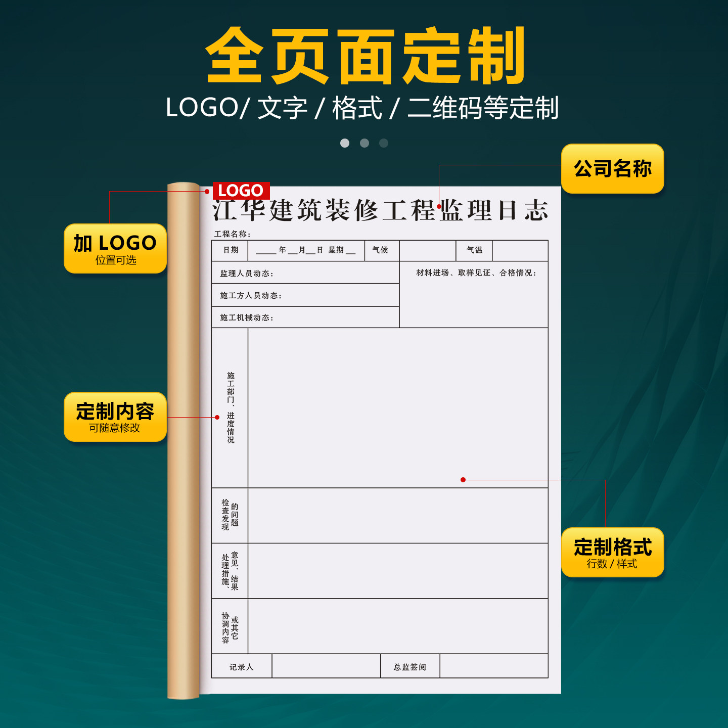 📚 【装修监理日志】建筑办公文具定制装潢施工质量巡查监督日记本工地安全作业管理手册工程项目工作进度跟进表