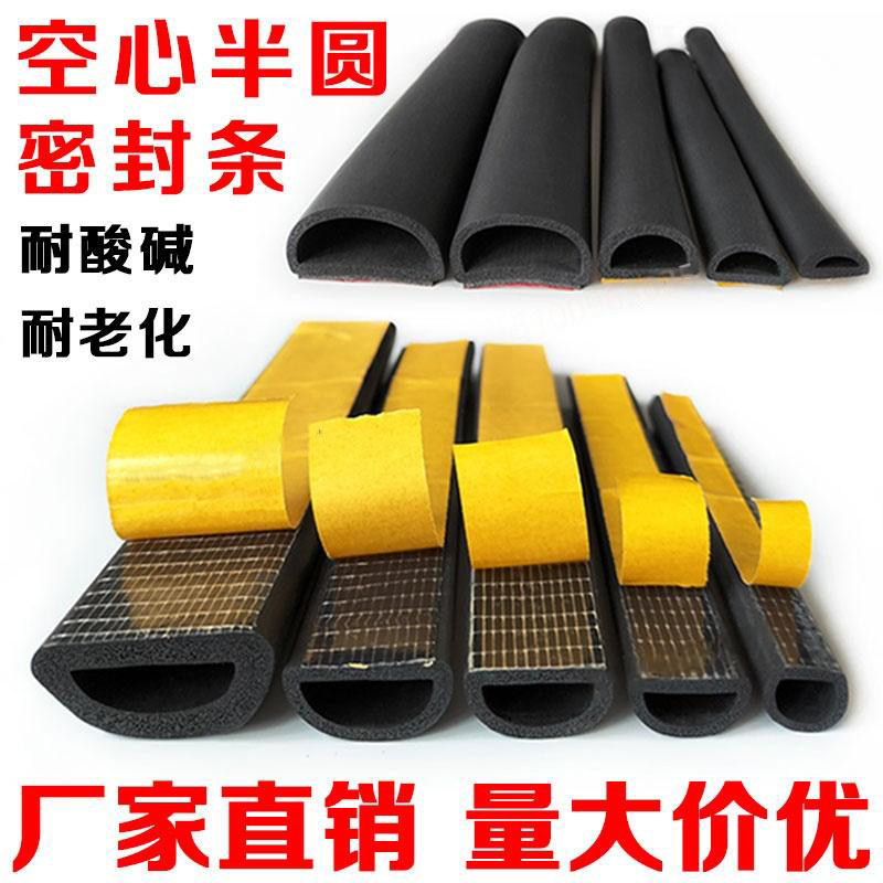 📚 空心半圆自粘密封条单面带胶D型三元乙丙橡胶发泡条配电箱海绵条