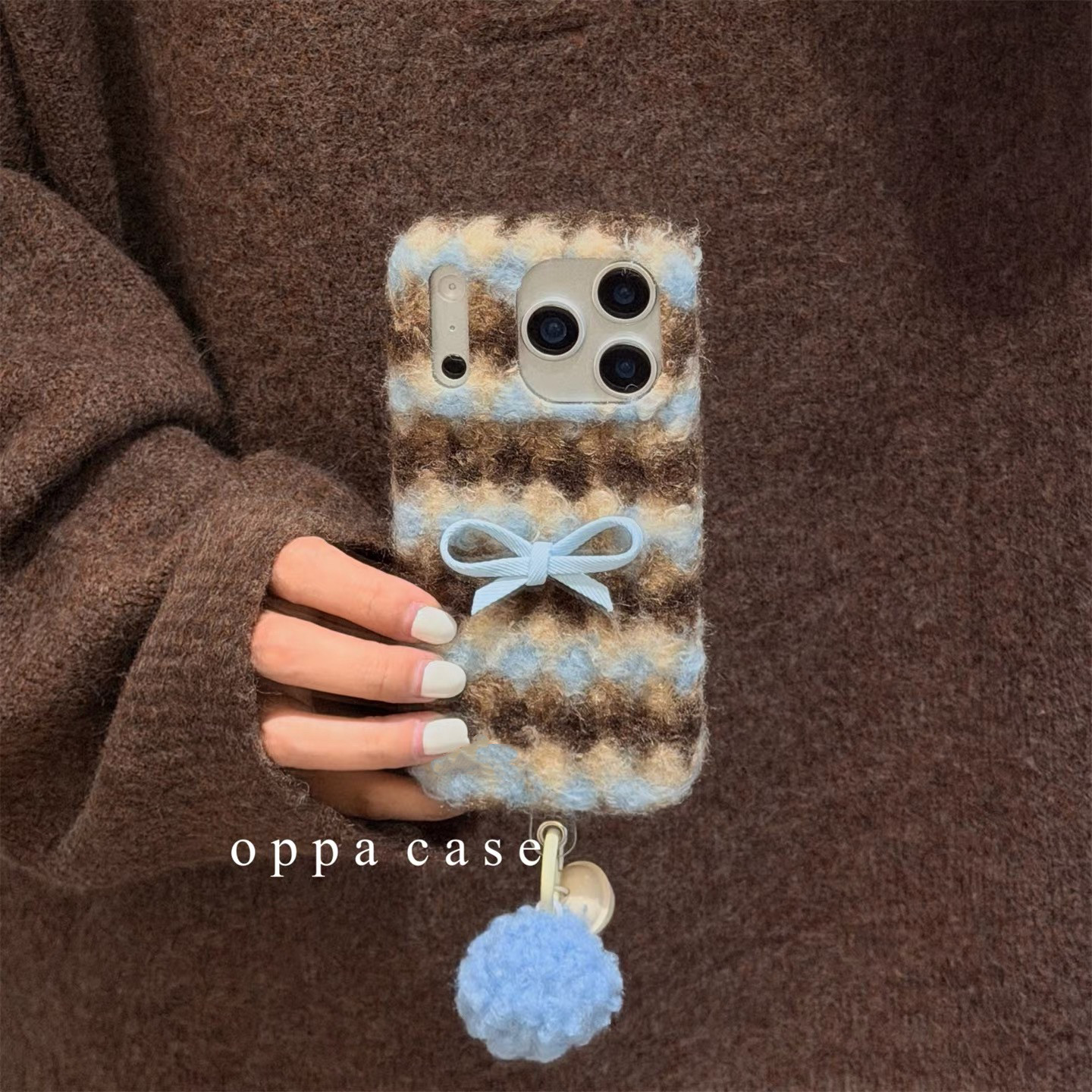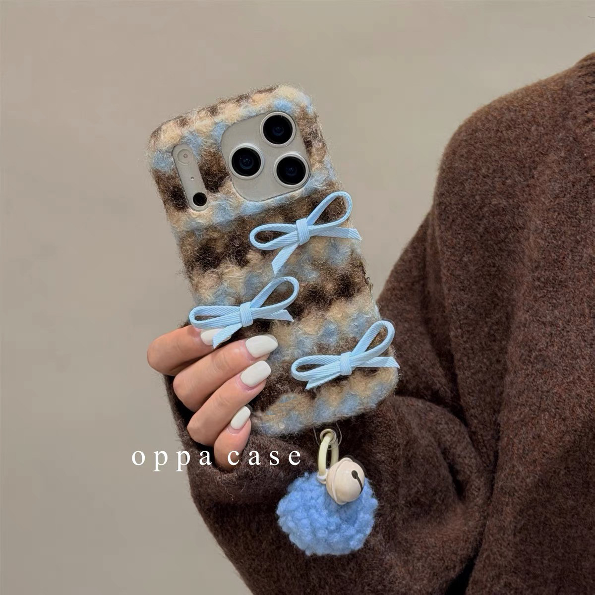 📚 ins新款秋冬毛绒布艺蝴蝶结苹果14plus女15适用iPhone17pro max女款16手机壳1+15/13/12/11一加ace6/5pro/3/2