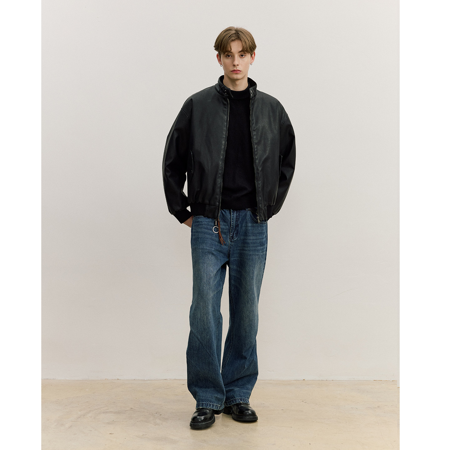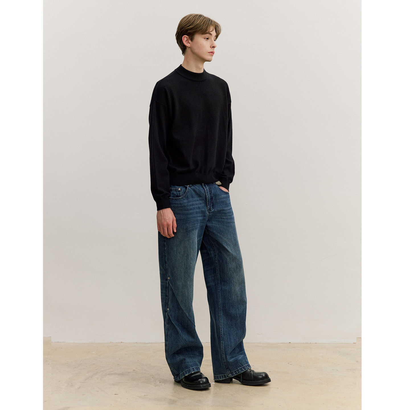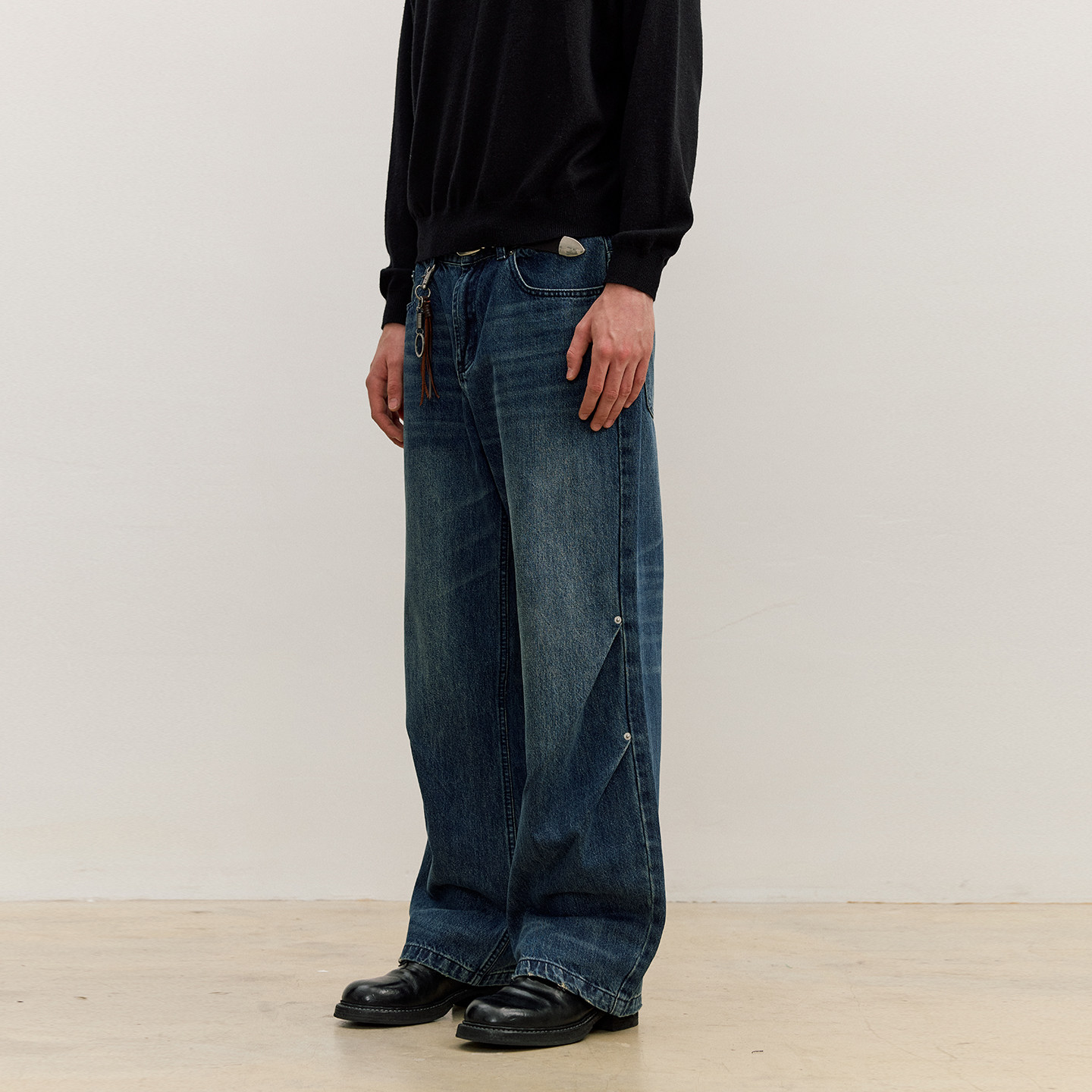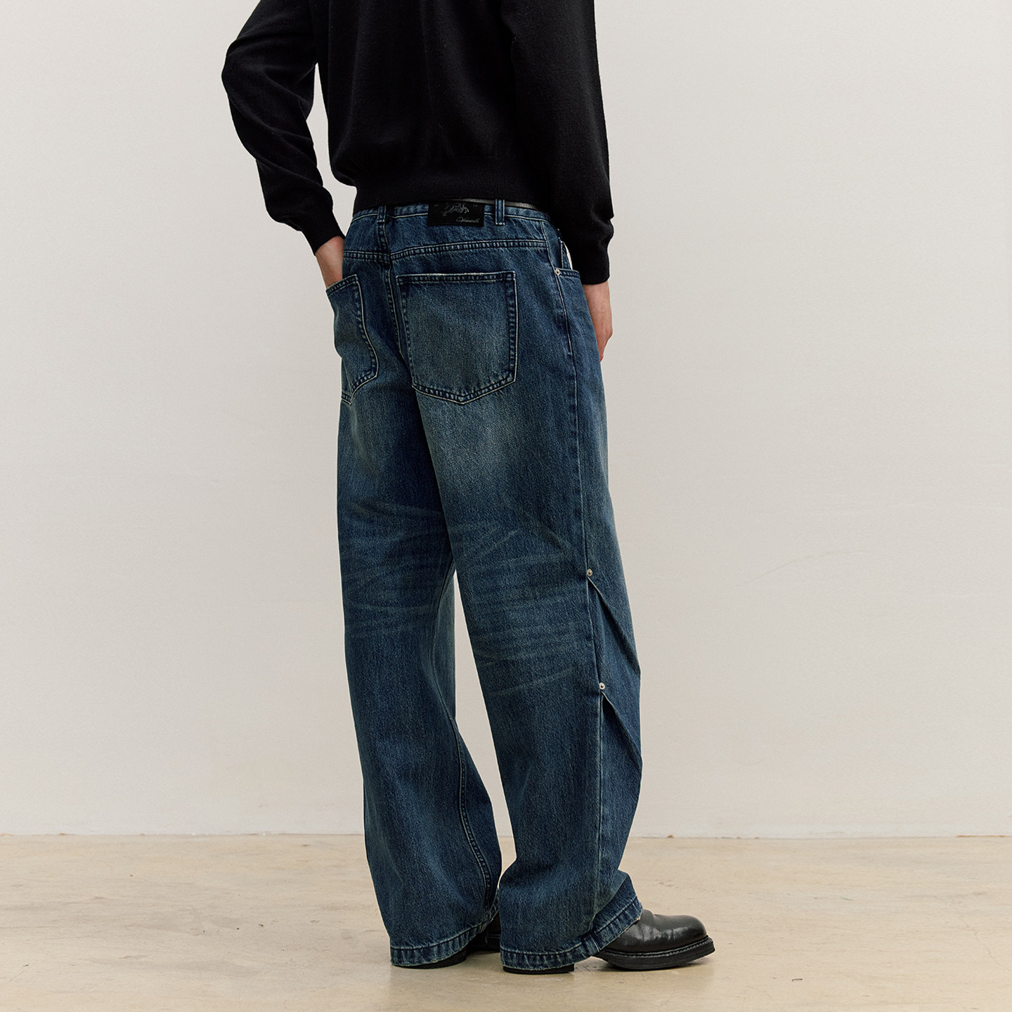 📚 VMCL 深蓝水洗双斜褶铆钉复古宽松直筒牛仔长裤男25AW vermicelli