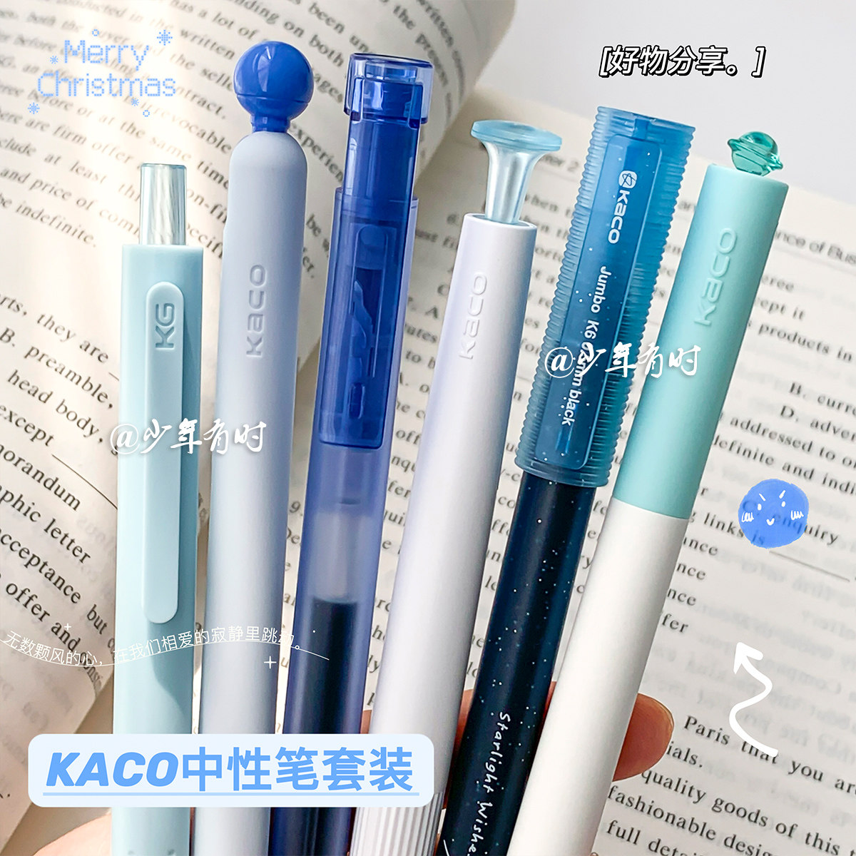 📚 KACO全家桶高颜值创意按动笔套装学生0.5顺滑速干考试中性笔黑笔