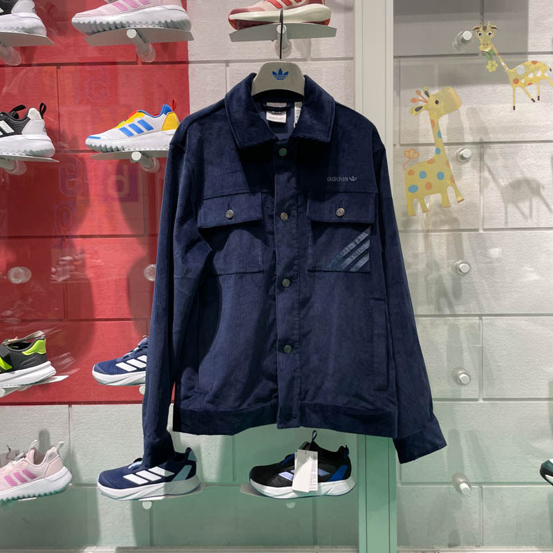 📚 阿迪达斯三叶草男子2024冬新款复古灯芯绒运动翻领夹克外套IX9609