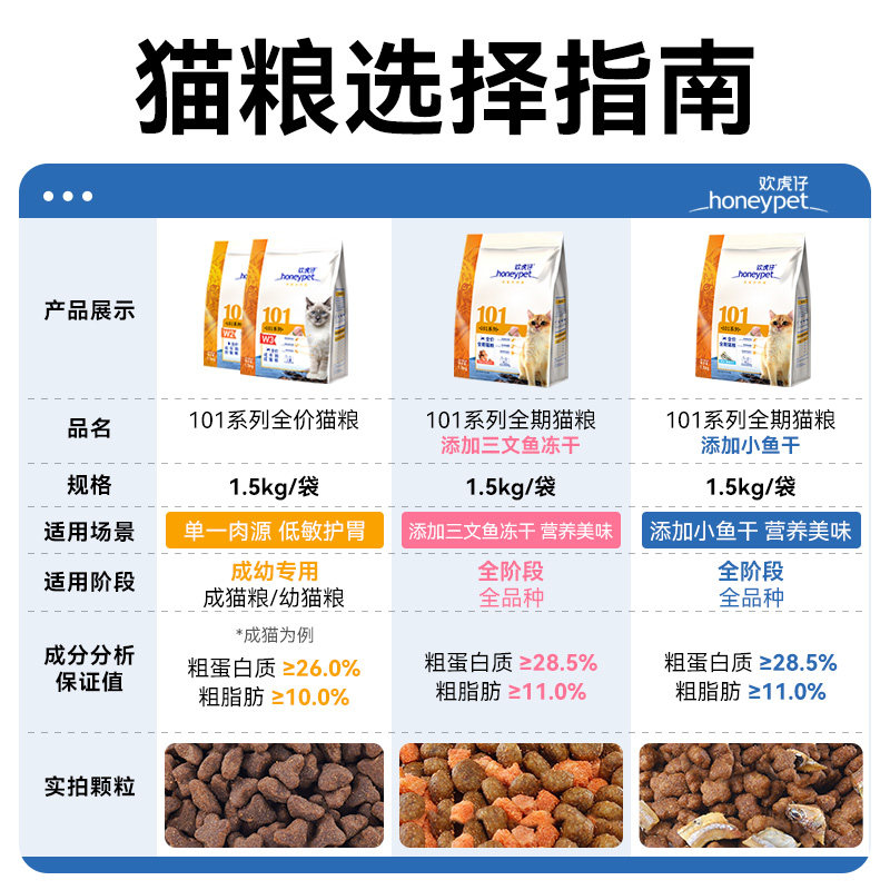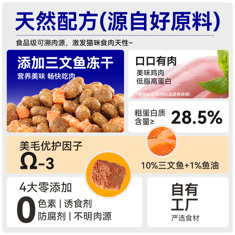 📚 欢虎仔101猫粮三文鱼冻干英美短通用型成猫幼猫营养全价全期1.5kg