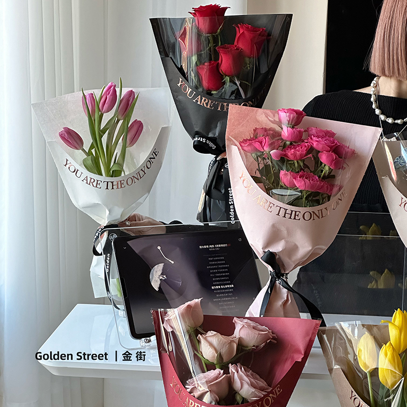 📚 烫金异性多支袋鲜花包装袋玫瑰防水单支袋花束手工摆摊花艺材料