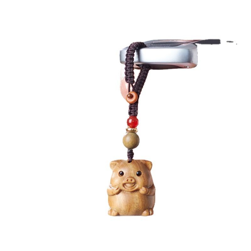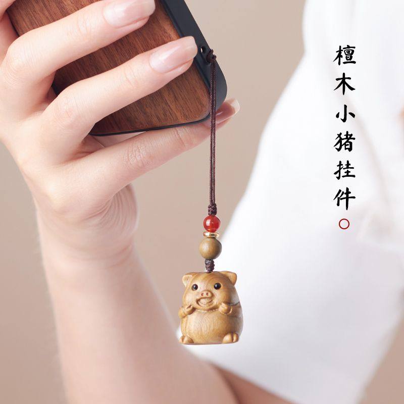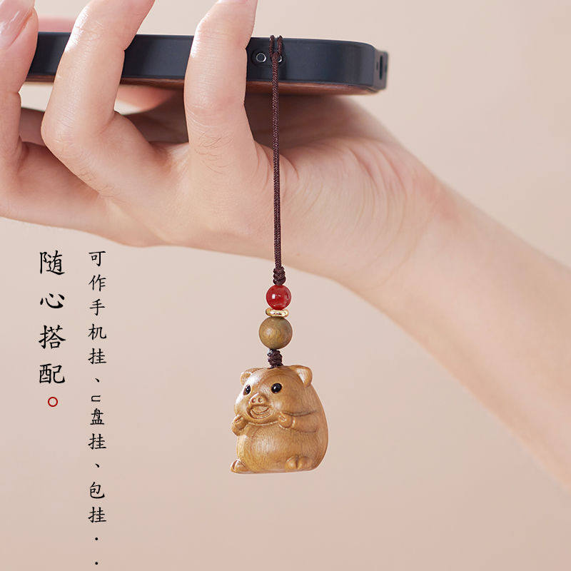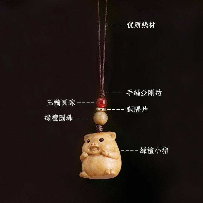 📚 绿檀木可爱卡通小猪钥匙扣挂件饰品猪事大吉系礼物女手机挂绳