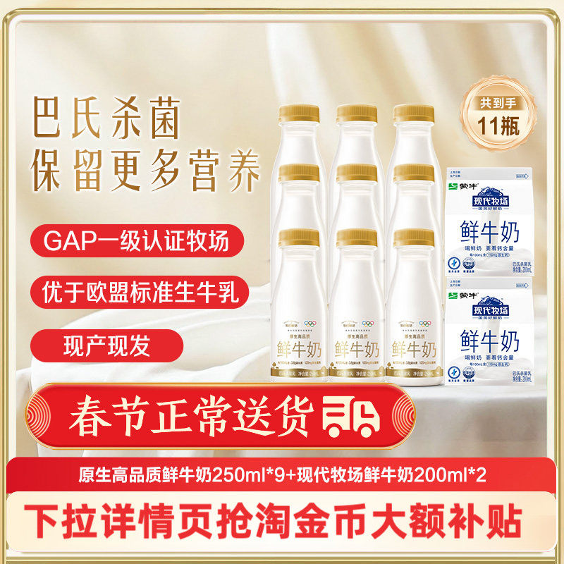 📚 蒙牛鲜奶现代牧场屋顶包200ml*2盒+全脂鲜奶250ml*9瓶 新鲜牛奶
