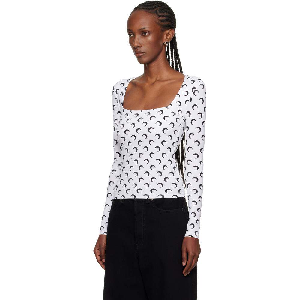 📚 1h可退 香港直邮Marine Serre 女士 白色 Moon Printed Jersey LS