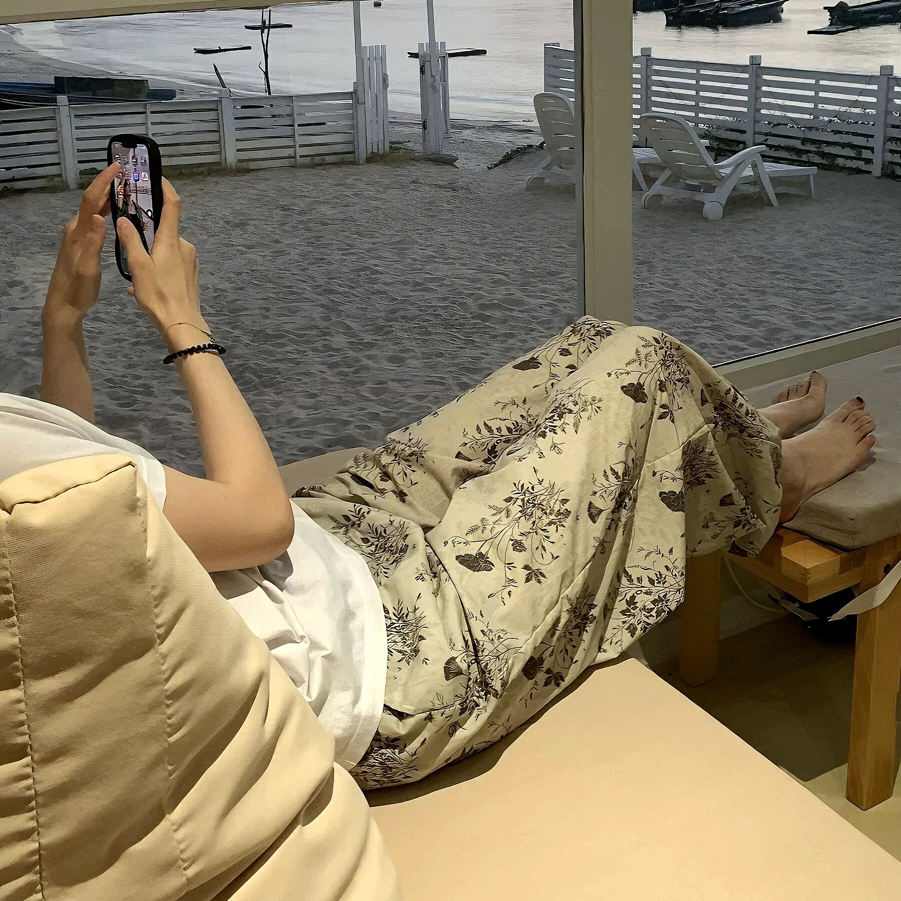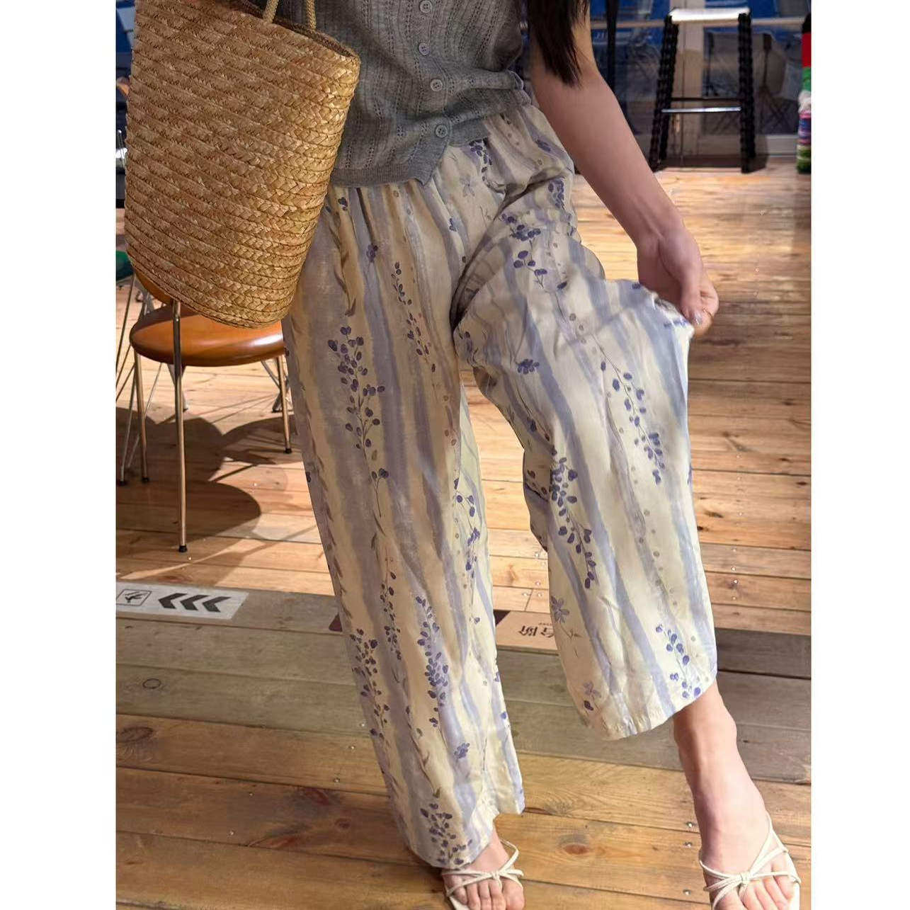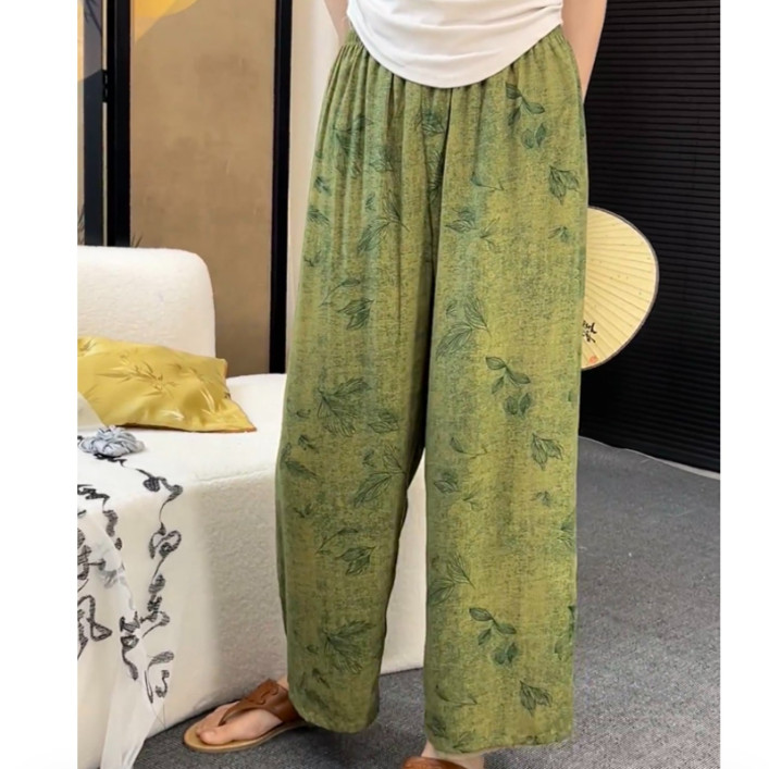 📚 女士夏季薄款遛弯裤睡裤外出裤长裤九分大码宽松休闲棉绸阔腿印花
