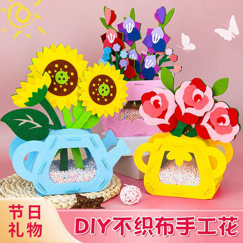 📚 教师节手工diy盆栽花束不织布材料幼儿园儿童亲子团建送老师礼物