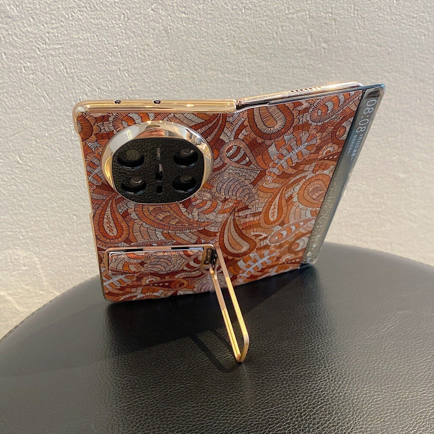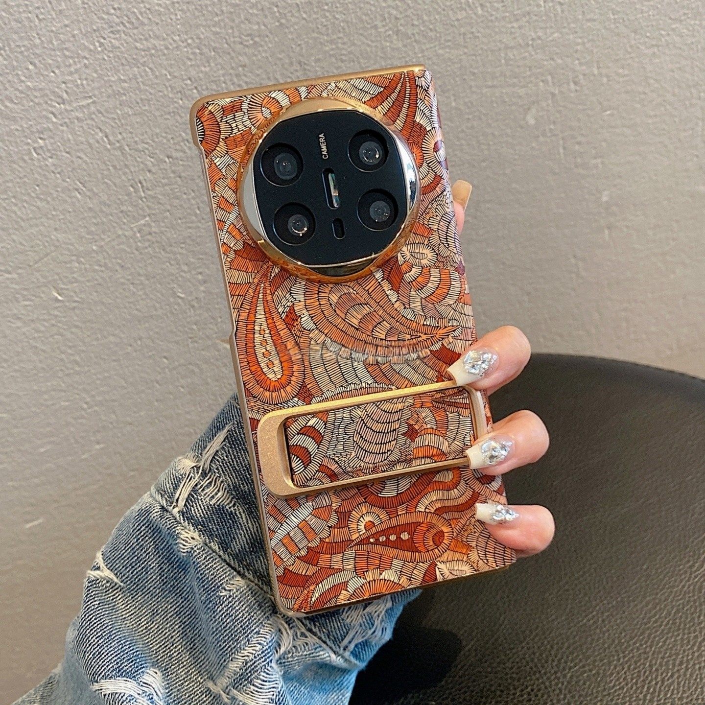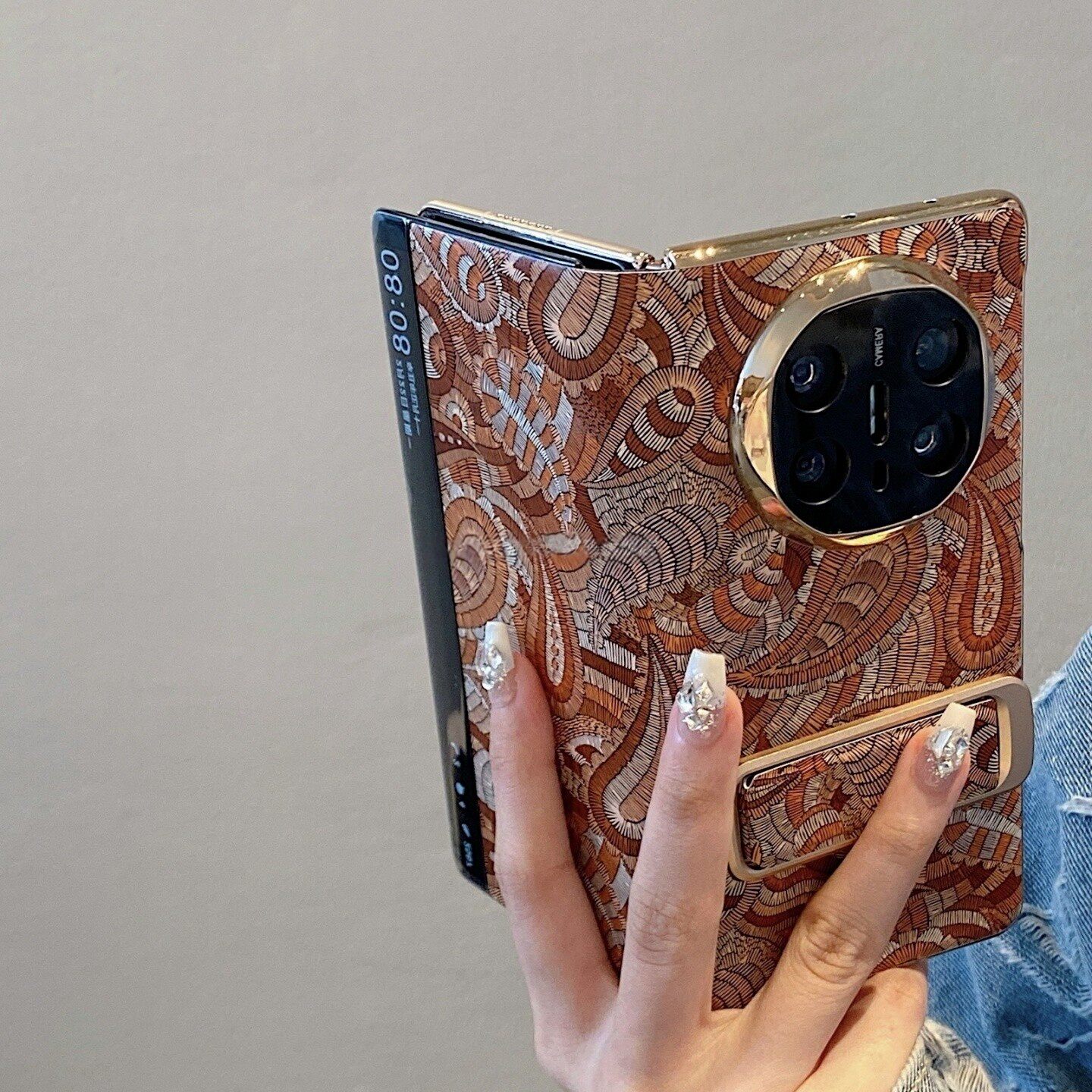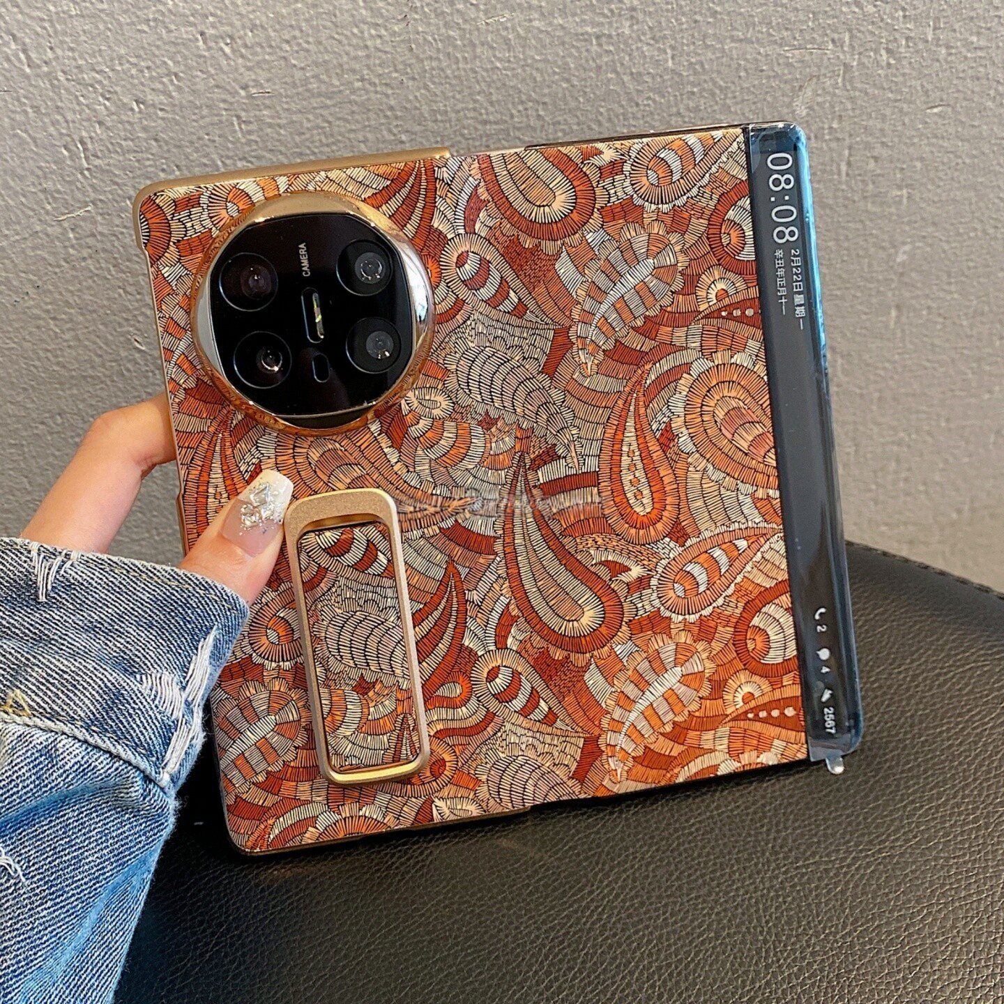 📚 适用华为matex6折叠屏手机壳x6智能视窗棕色覆古花纹带支架matex5典藏版x3小众高级时尚xts 全包防摔手机外壳