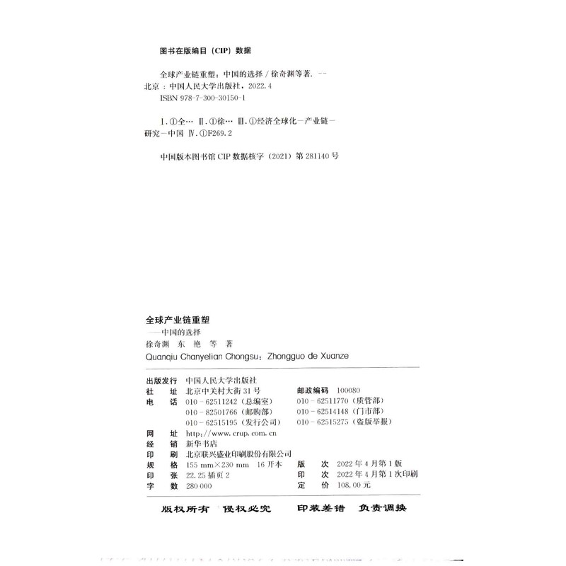 📚 全球产业链重塑:中国的选择徐奇渊, 东艳等著金融投资中国人民大学出版社新华书店正版