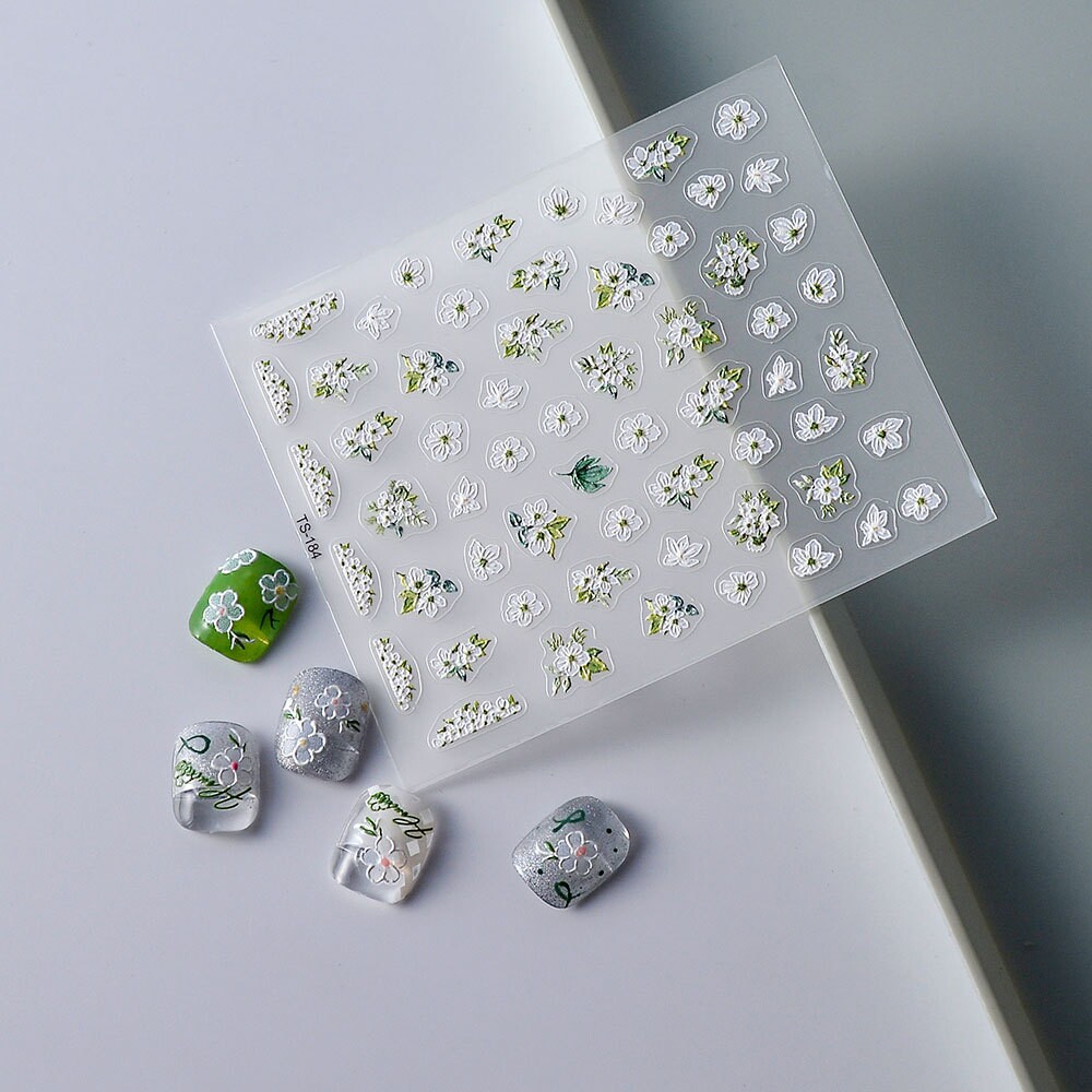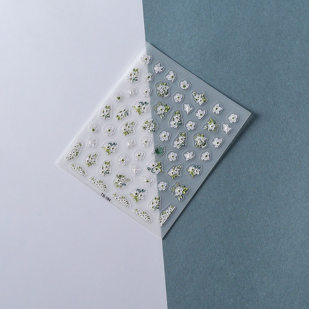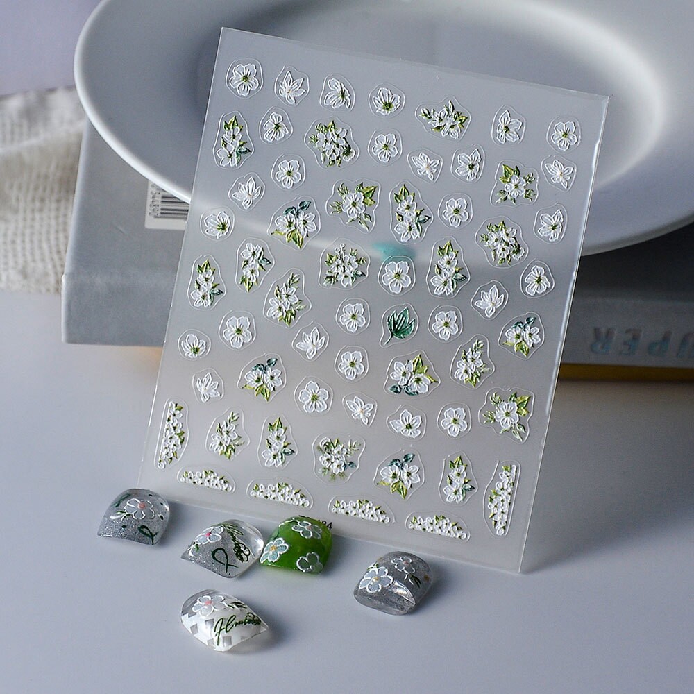 📚 White Flower 5D Nail Art Stickers 白色花朵浮雕美甲贴纸手帐贴