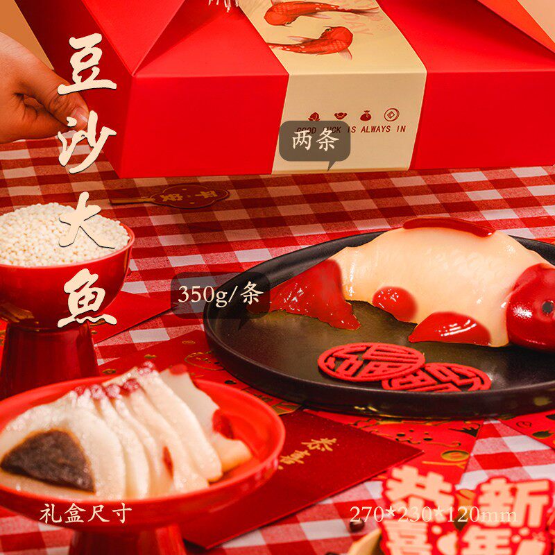 📚 锦鲤鱼形年糕八宝山楂鱼礼盒装年年有余糯米饭常温软糯豆沙年糕鱼
