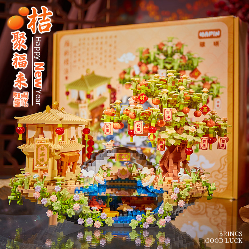 📚 建筑系列积木拼装中国风福橘立体摆件小颗粒手工diy喜庆新年礼物