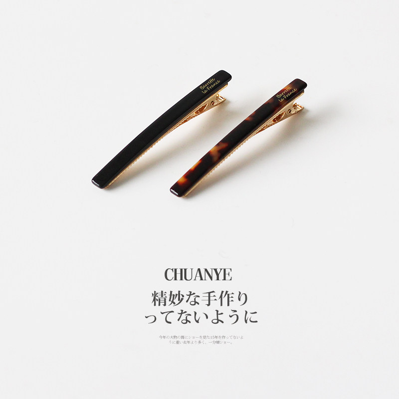 📚 川野法式棕黑色长方形发夹新款轻奢高级感侧边碎发一字夹头饰发饰