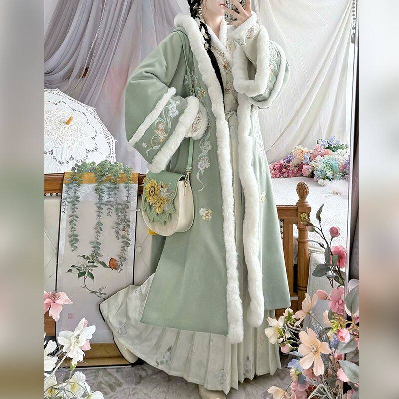97¥ CZ001 Qca4UKqfsiE¥ https://m.tb.cn/h.7Aplzgw 正衣冠原创汉服女{初晴}宋制对襟侧兜连帽加绒加厚长褙子交领褶裙 --------------------- 【原售价】284元 【现售价】142元。