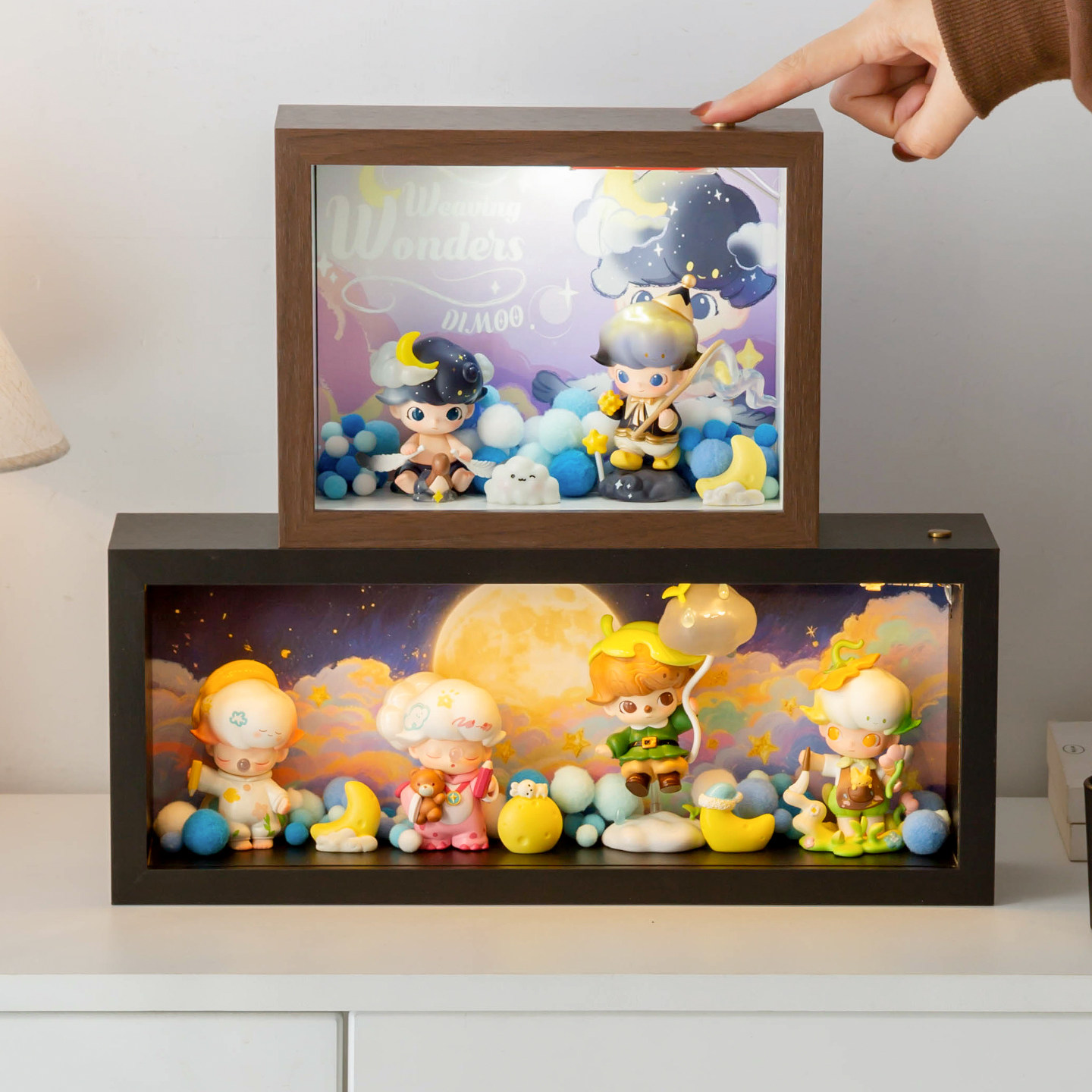 📚 DIMOO梦里梦外星星人带灯盲盒收纳盒泡泡玛特手办展示柜相框摆件