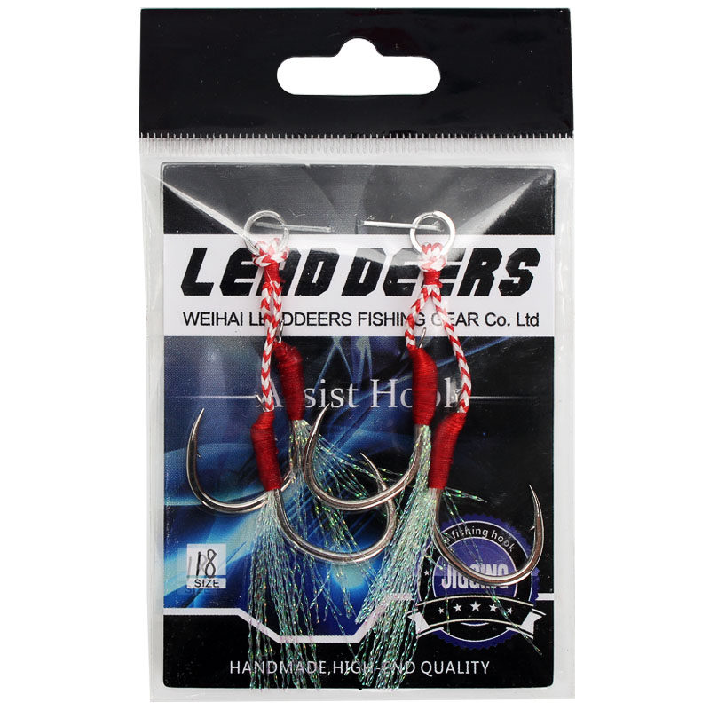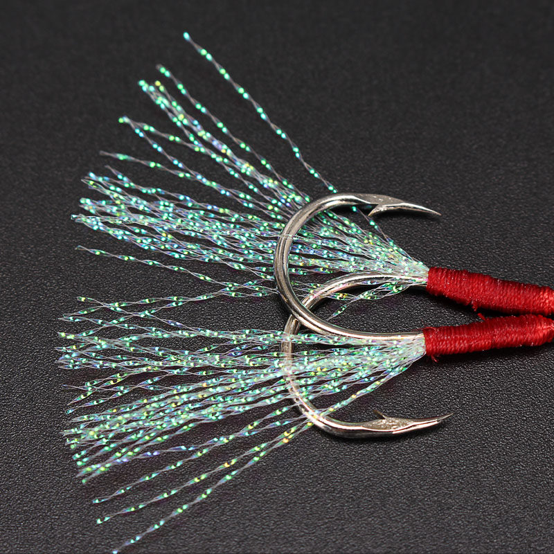 📚 带闪光丝慢摇铁板钩海钓路亚小铁板钩绑好PE线奥金单双钩子8-18号
