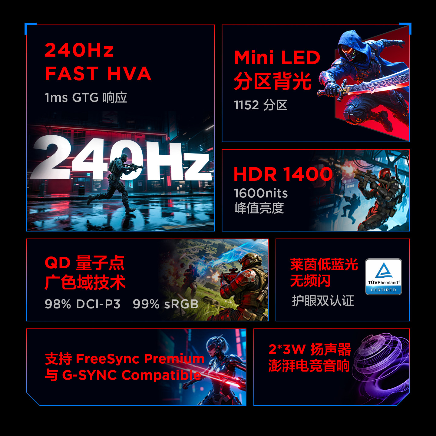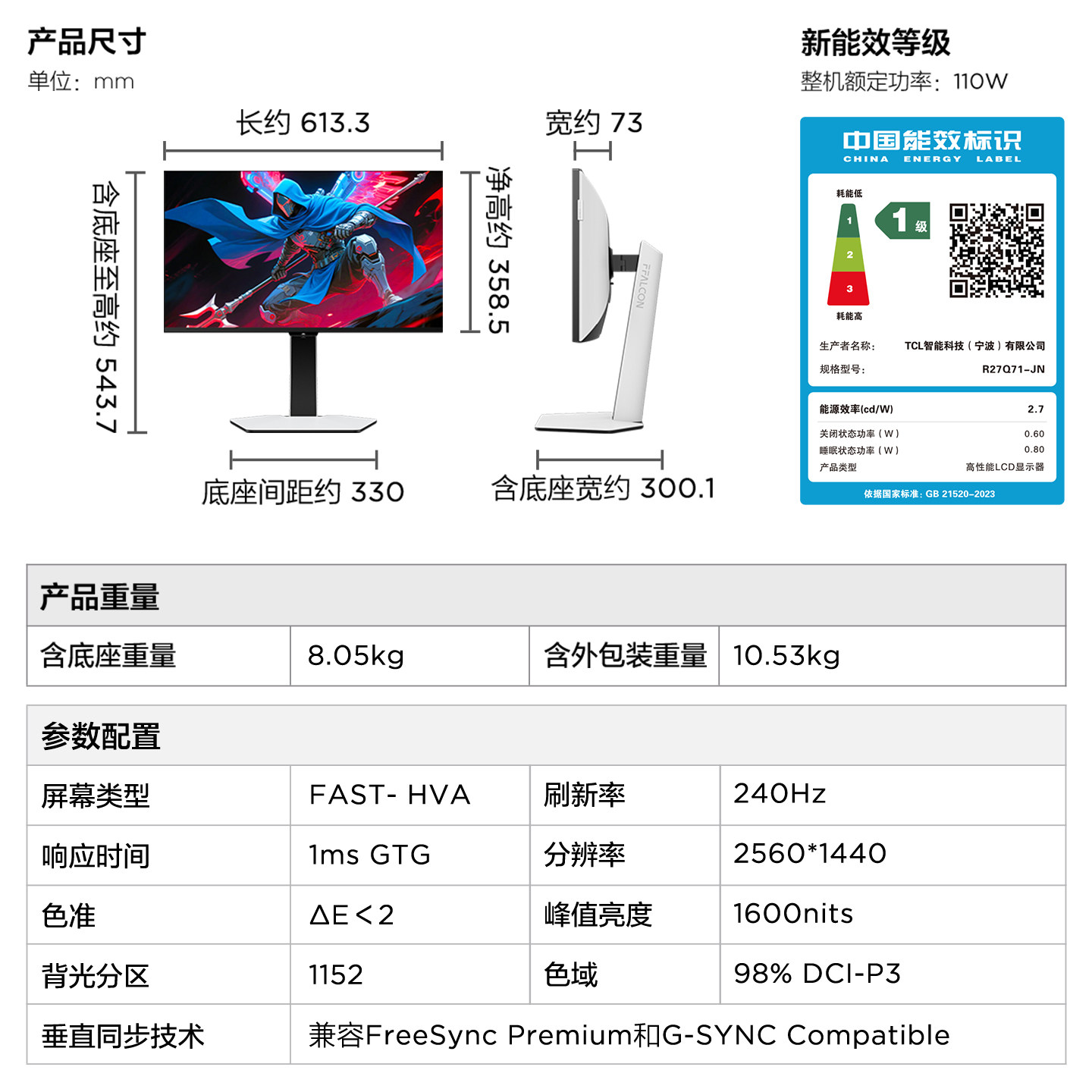 📚 雷鸟Q7 27英寸2K240Hz高刷1152分区方形底座QDMiniLED电竞显示器