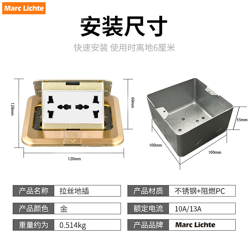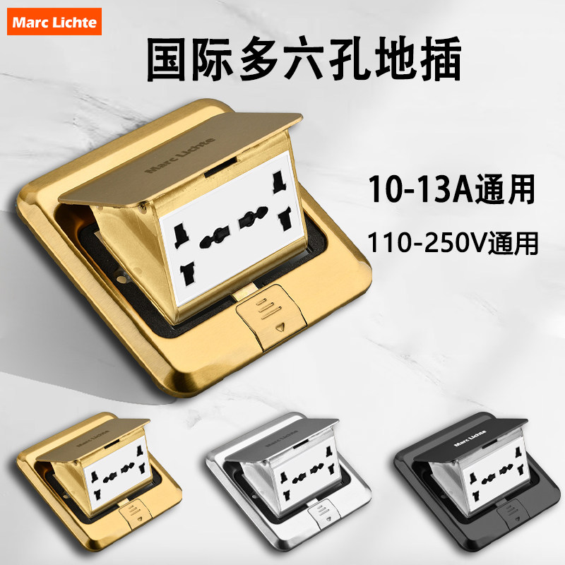 📚 弹起式多六孔地插国际多功能六孔10-13A通用不锈钢防水电源地插座
