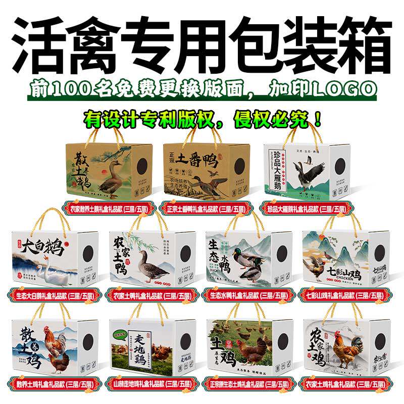 📚 活禽专用纸箱活鸡礼品盒土鸭手提绳礼盒大鹅包装盒家禽空盒子箱子