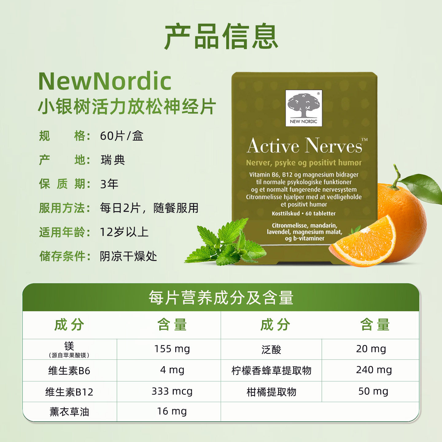 📚 NewNordic小银树活力放松神经片缓解焦虑压力好心情运动保健补充
