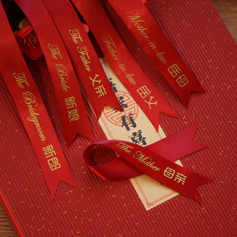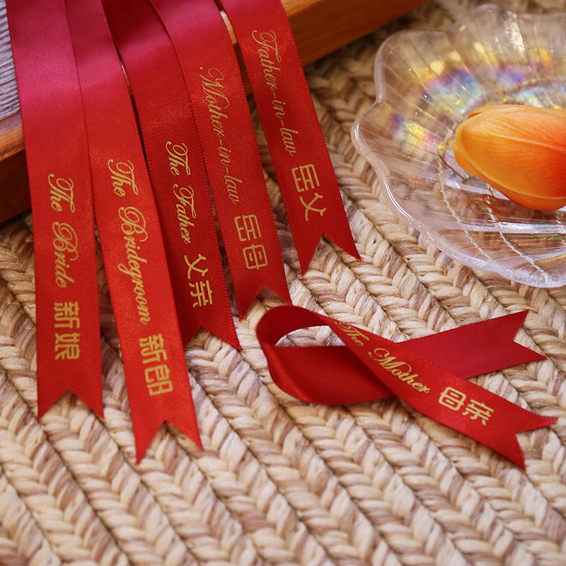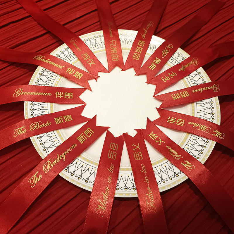 📚 结婚红色韩式胸花称谓条大全新郎新娘伴娘伴郎岳父岳母飘带字条等