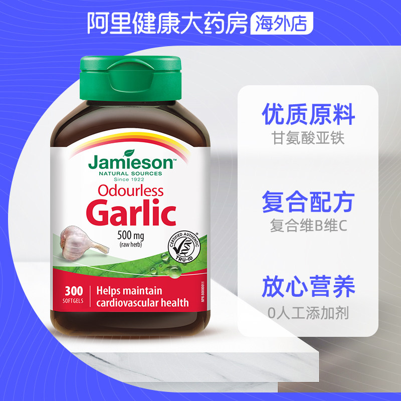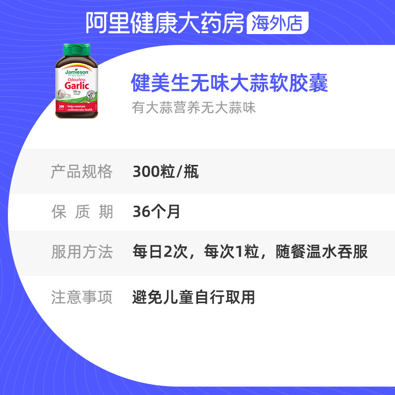 📚 jamieson健美生进口无味大蒜提取物浓缩软胶囊300粒 大蒜素精华油