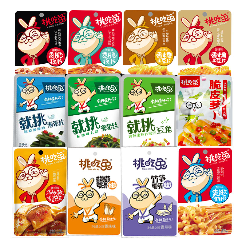 📚 挑吃兔金针菇杏鲍菇海带丝土豆片竹笋藕片萝卜豆角开袋即食小零食